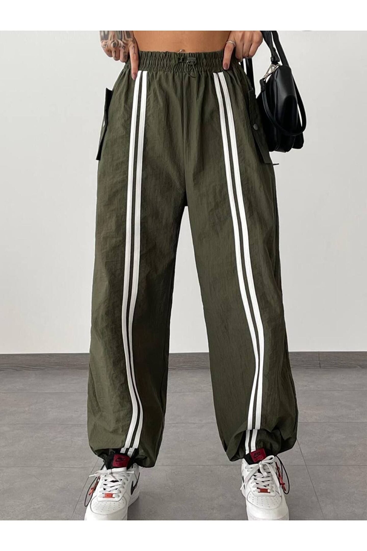 popibutik Cep Detaylı Lastikli Haki Paraşüt Pantolon