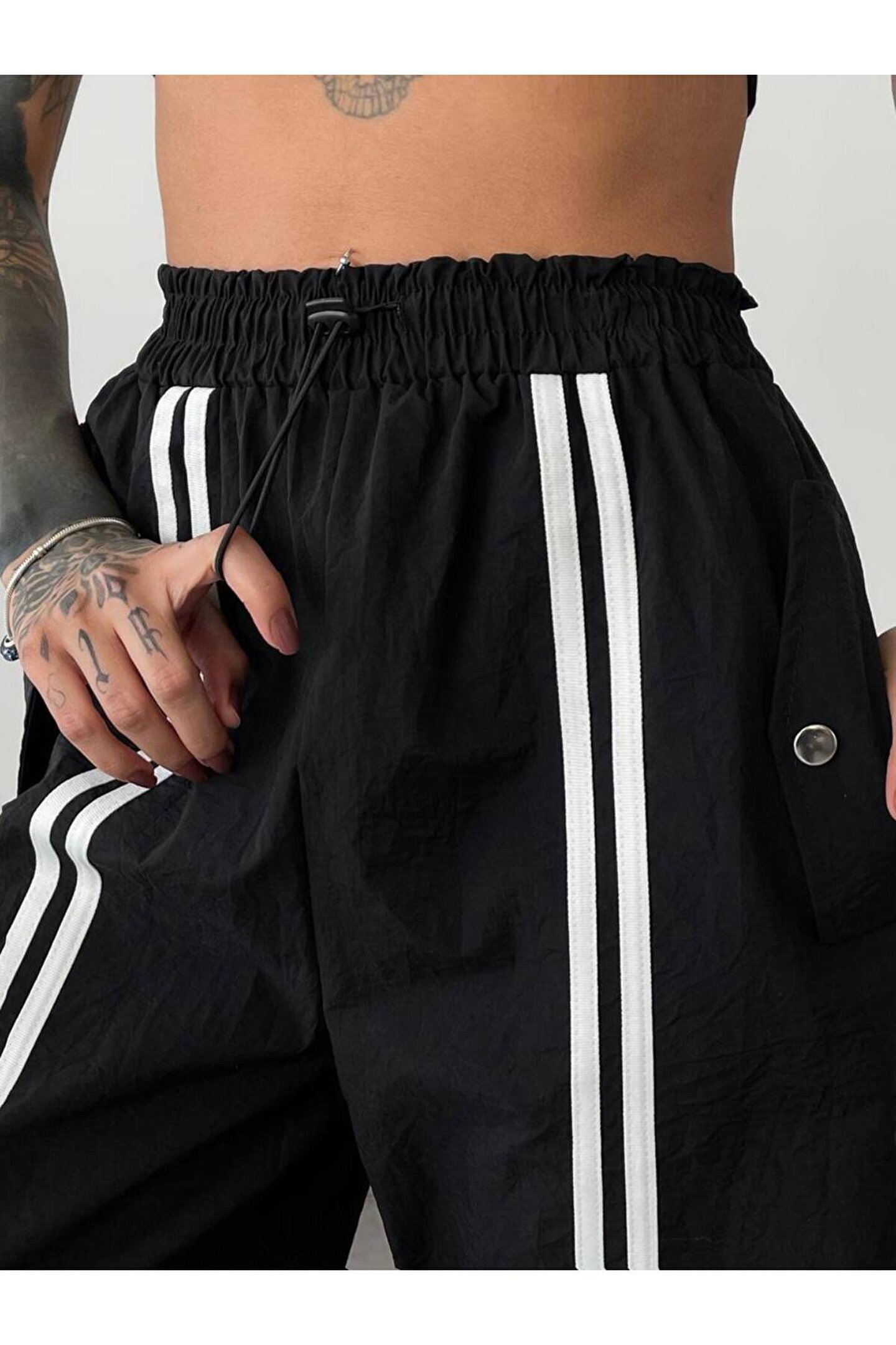 Rahat kesimiyle günlük kullanım için ideal olan bu pantolon, gençlerin tarzını tamamlıyor.; Cep detaylarıyla fonksiyonellik kazanan bu pantolon, günlük eşyalarınıza kolay erişim sağlıyor.; Trend tasarımıyla dikkat çeken siyah paraşüt kumaşı, modaya uygun bir görünüm sunuyor.; Lastikli bel tasarımı sayesinde konforlu bir oturuş sağlarken, şık duruşunu koruyor.; Kaşkorse kumaşı ile hafifliği ve nefes alabilirliği ön planda tutarak gün boyu rahat etmenizi sağlıyor.;