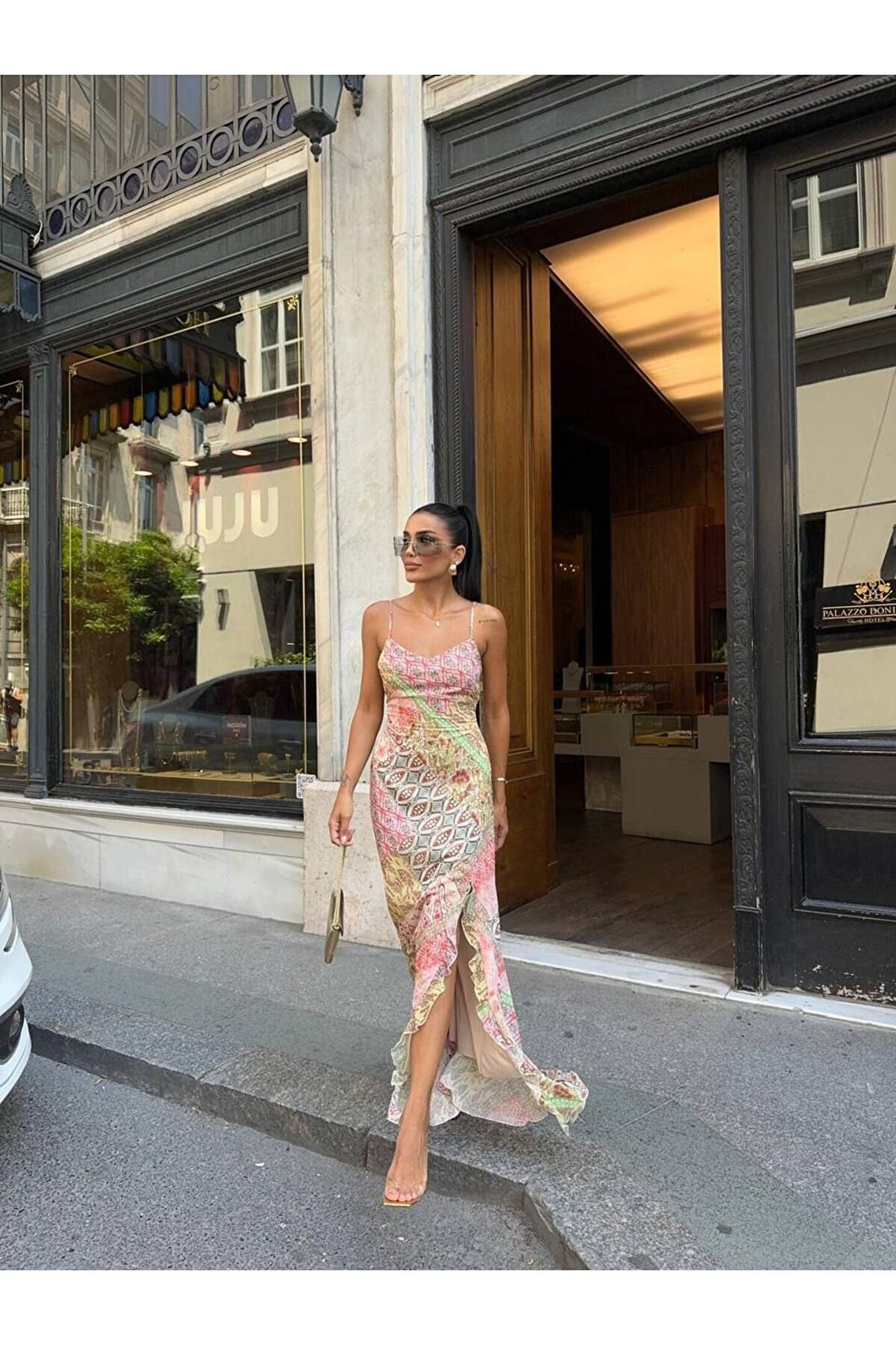 Zarif desenleriyle dikkat çeken bu elbise, gençlerin tarzını yansıtan canlı pembe tonuyla göz alıcı bir görünüm sunar.; İnce askılı tasarımı sayesinde omuzlarınızı zarifçe sergilerken, şifon kumaş yapısı hafifliği ve rahatlığıyla konforlu bir deneyim sağlar.; Maxi boyu ile hem şıklığı hem de konforu bir arada sunan bu elbise, günlük kullanımdan özel etkinliklere kadar geniş bir yelpazede tercih edilebilir.; Bele oturan kalıbı sayesinde vücut hatlarınızı nazikçe sararak feminen siluetinizi ön plana çıkarır.; Kumaş tipinin belirtilmemiş olması, şifonun hafif dokusunu korurken esneklik ve dayanıklılık gibi diğer özelliklerin de mevcut olabileceğini düşündürür.;
