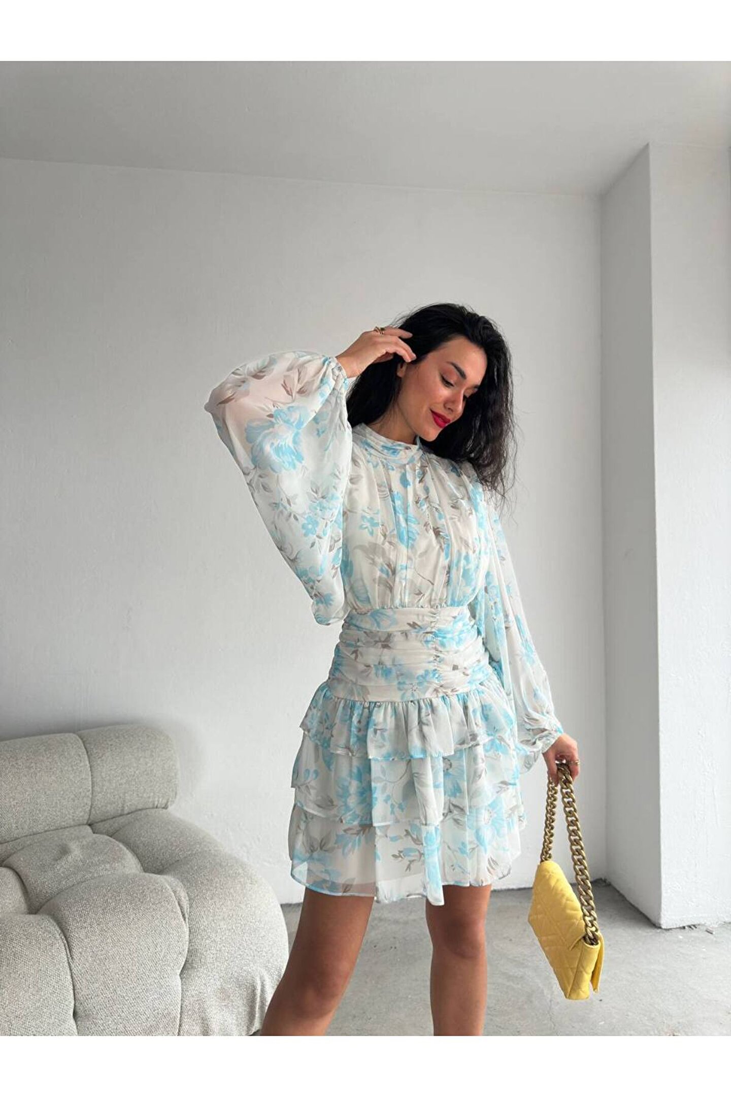 - Zarif dik yakası ve şık desenleriyle dikkat çeken bu mini şifon elbise, özel günlerinizde göz alıcı bir görünüm sunar; - Polyester materyal kullanımı sayesinde uzun ömürlü ve dayanıklı bir yapıya sahip olup, kolay bakım imkanı sağlar; - Design koleksiyonuna ait bu elbise, modern ve trend tasarımlarıyla her gardıropta yerini almayı hak eder; - Uzun kollu ve slim kalıbı ile vücut hatlarınıza mükemmel uyum sağlayarak feminen bir siluet oluşturur; - Şifon dokuma tipi, hafif ve nefes alabilen yapısıyla konforlu bir kullanım sunarken, baskılı deseniyle stilinizi öne çıkarır; - Astarlı yapısı sayesinde rahatlıkla tercih edebileceğiniz bu elbise, tüm yaş gruplarına hitap eden geniş bir kullanıcı kitlesine sahiptir; - Şık ve gece ortamları için ideal olan bu elbise, dantel detaylarıyla zarafeti ve sofistike bir dokunuşu beraberinde getirir;