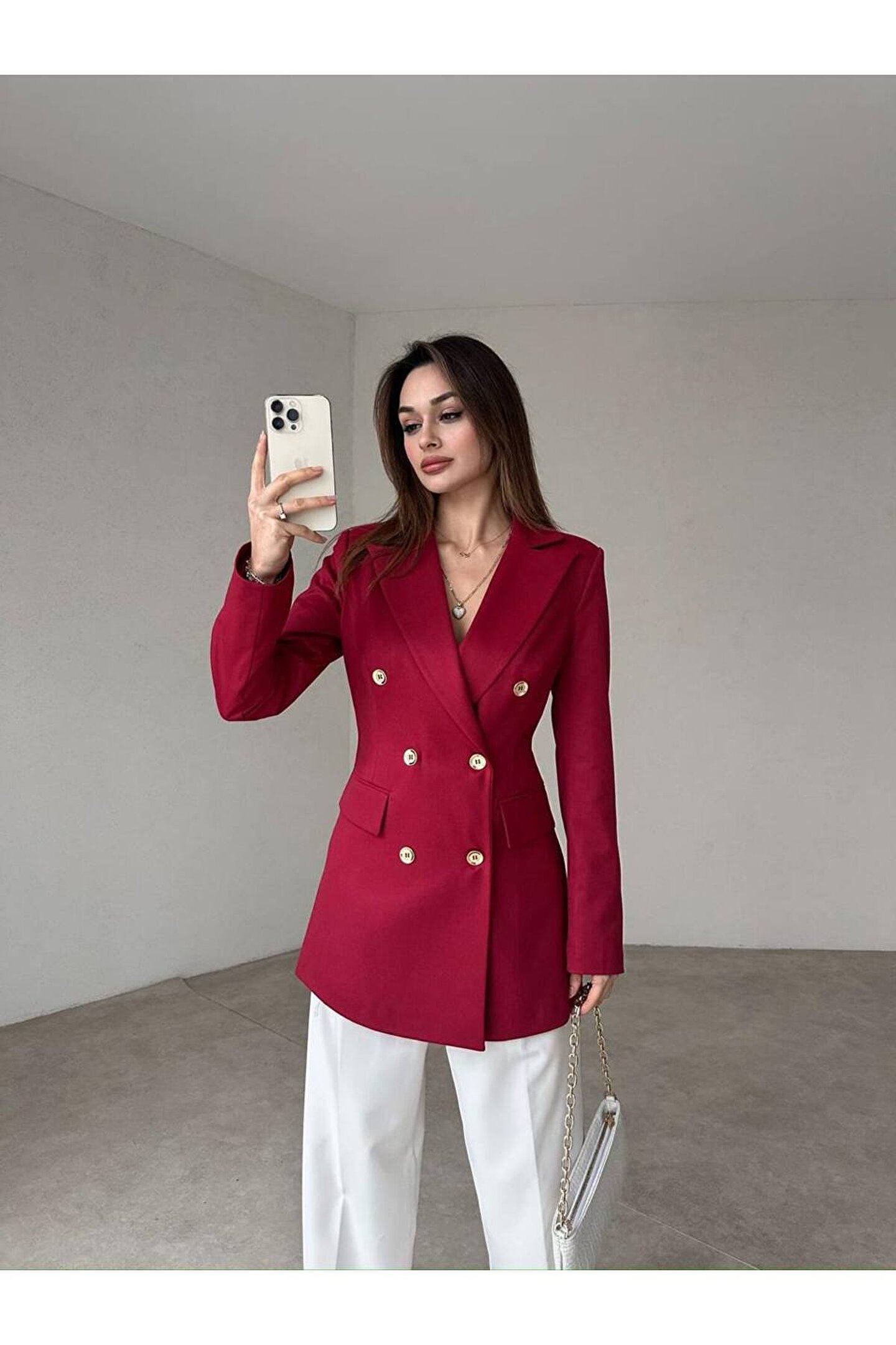 popibutik Kadın Çift Düğme Atlas Kumaş Ceket