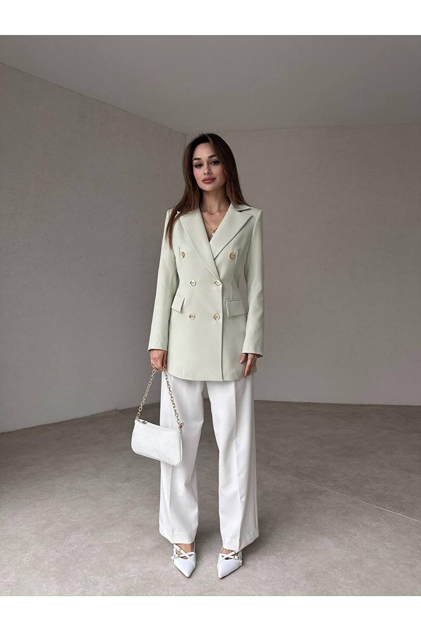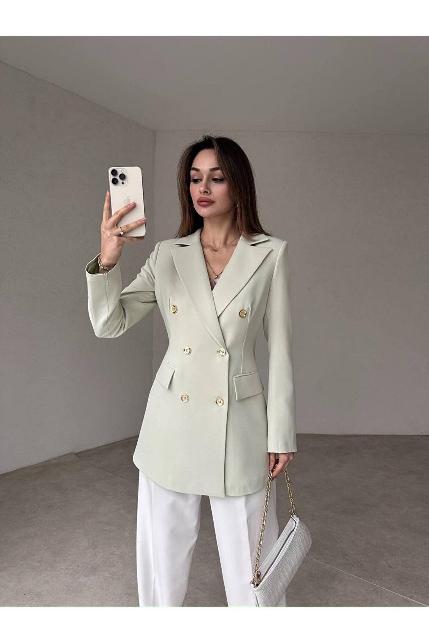 popibutik Kadın Çift Düğme Atlas Kumaş Ceket
