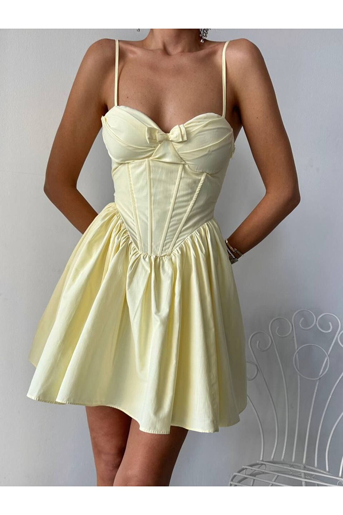 popibutik Kadın Göğüs Fiyonk Detaylı Korse Formlu Mini Elbise