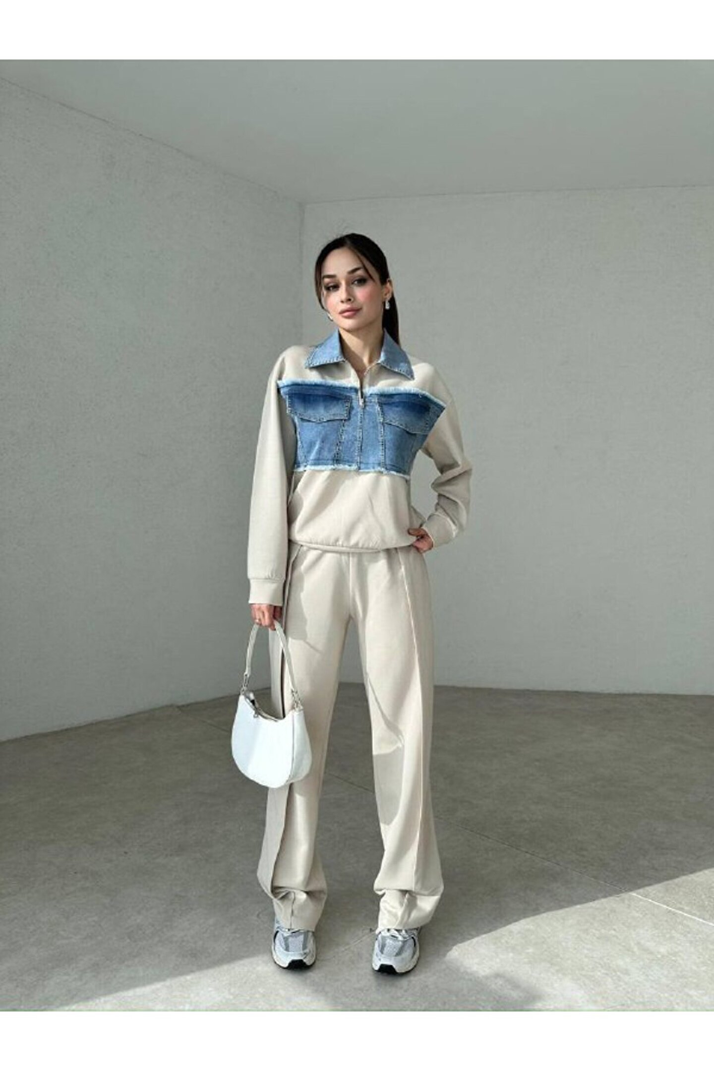 popibutik Kadın Kot Detaylı Takım