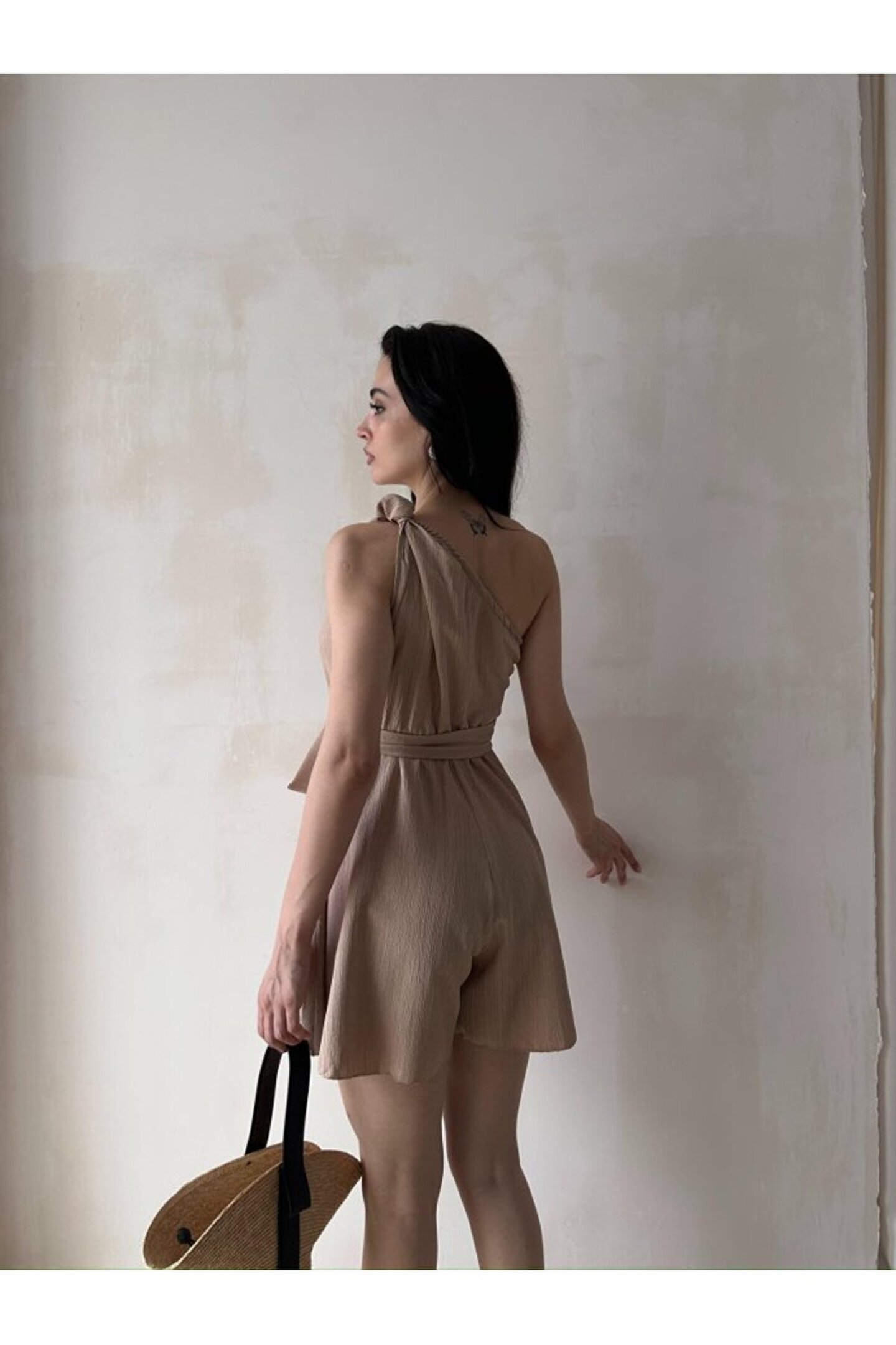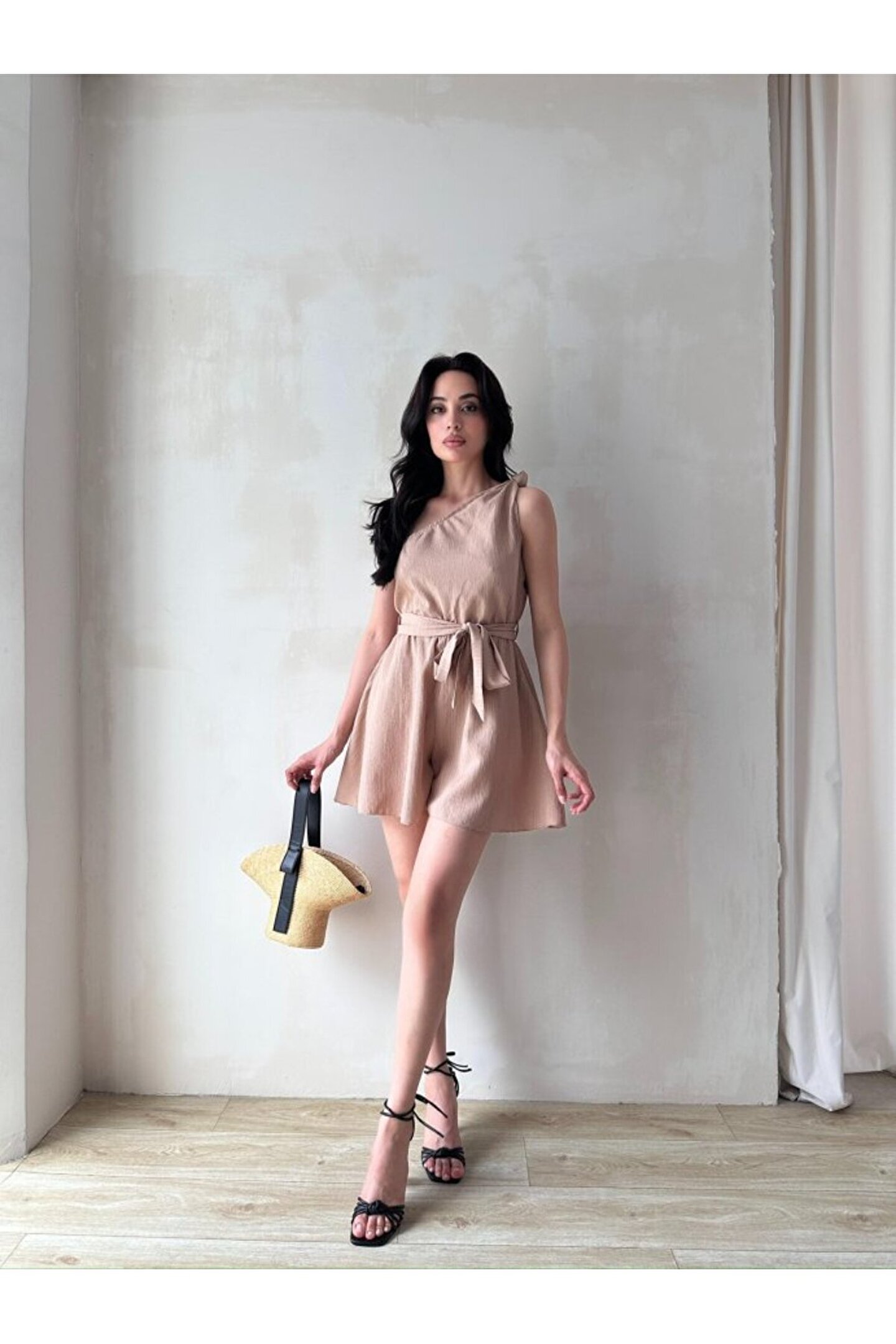 popibutik Kadın Tek Omuz Kuşaklı Mini Tulum