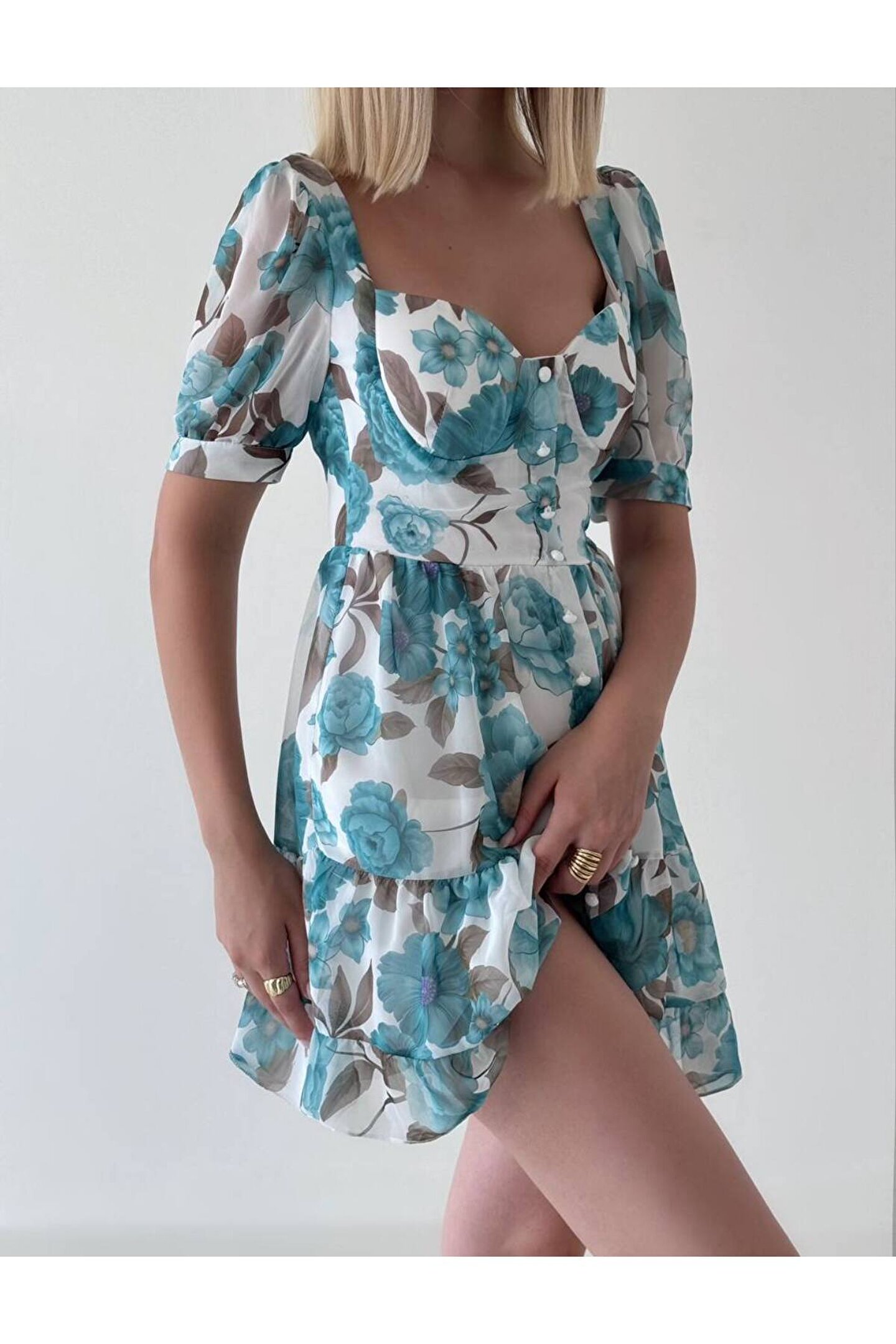 Zarif düğme detayları ile süslenmiş, şık ve modern bir görünüm sunar; Kısa kollu tasarımı sayesinde rahat hareket etme özgürlüğü sağlar; Hafif ve nefes alabilen şifon kumaşı, yaz aylarında serinlik ve konfor sunar; Mini boyu ile feminen ve dinamik bir stil yaratır; Belirtilmemiş kumaş tipi, esneklik ve rahatlık için idealdir; Bele oturan kalıbı sayesinde vücut hatlarını zarifçe sarar ve şık bir siluet oluşturur; Genç yaş grubuna hitap eden tasarımıyla enerjik ve canlı kombinler için uygundur; Şifon materyali, hafifliği ve zarafetiyle dikkat çekerken, kolay bakım imkanı sunar;
