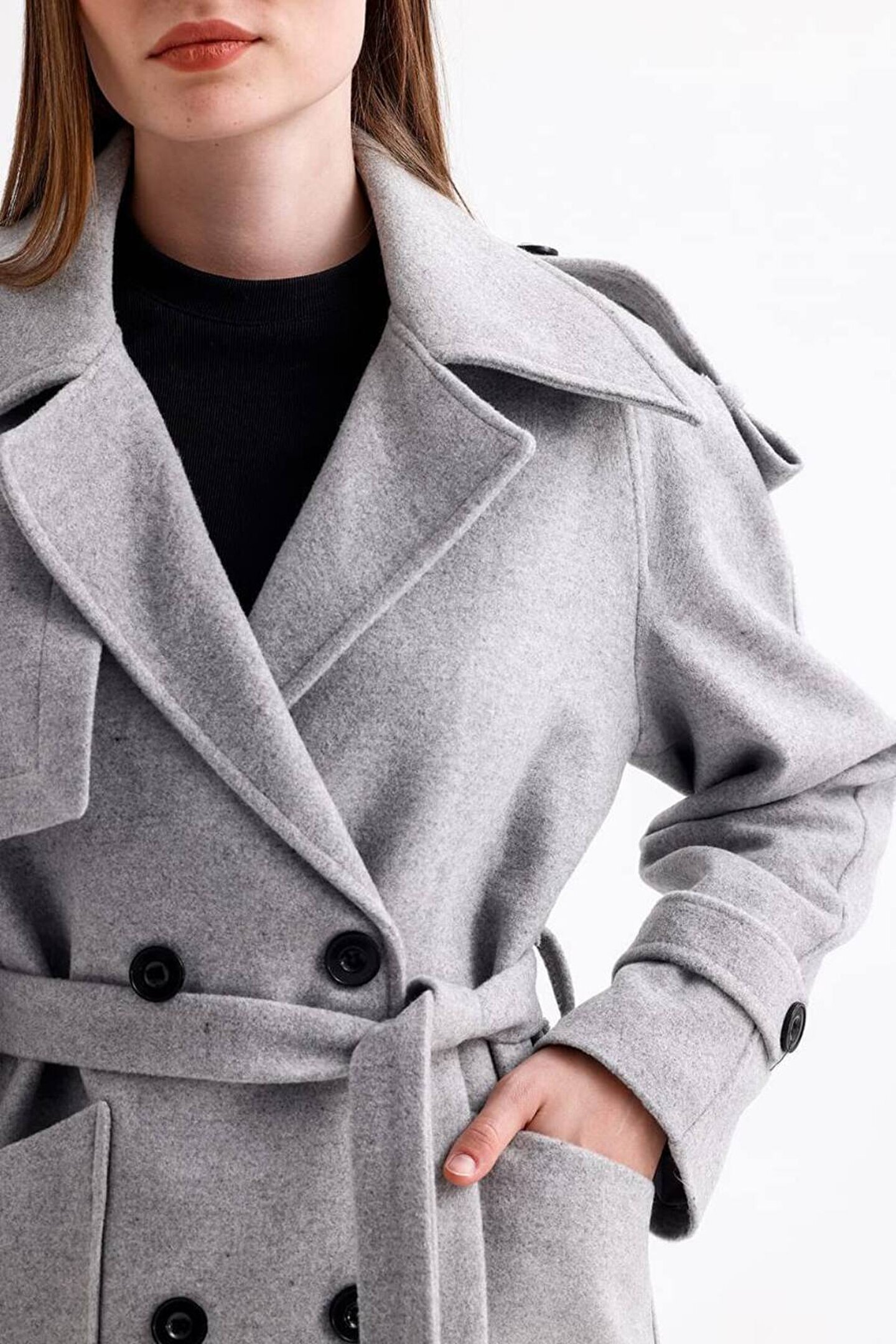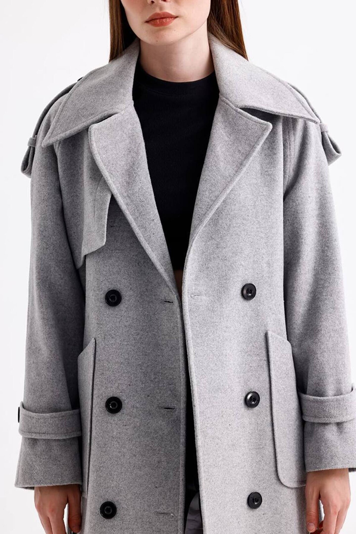 popibutik Kuşaklı Düğmeli Kaşe Kaban