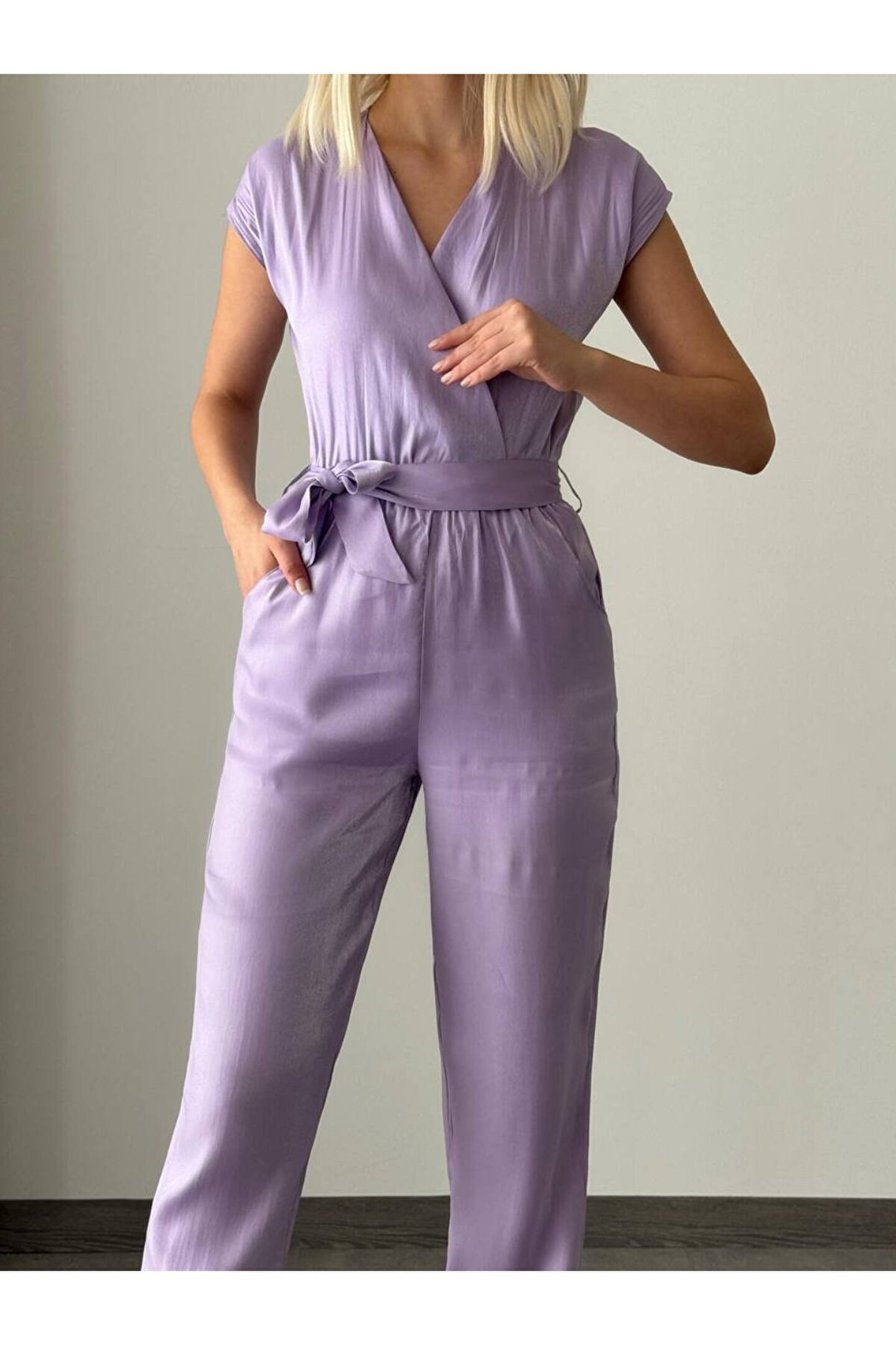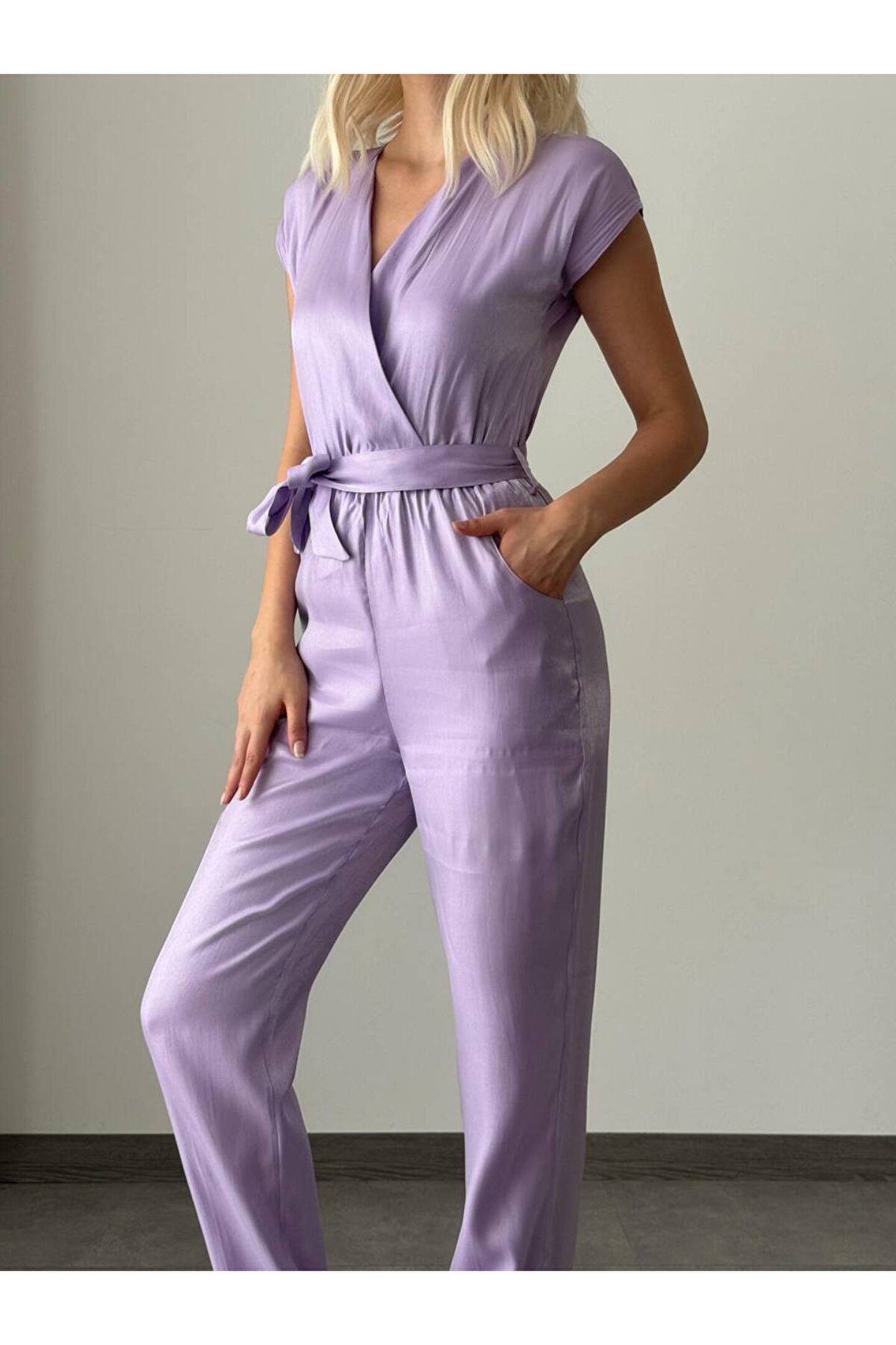 popibutik Lucas Kumaş V Yaka Sıfır Kol LilaTulum