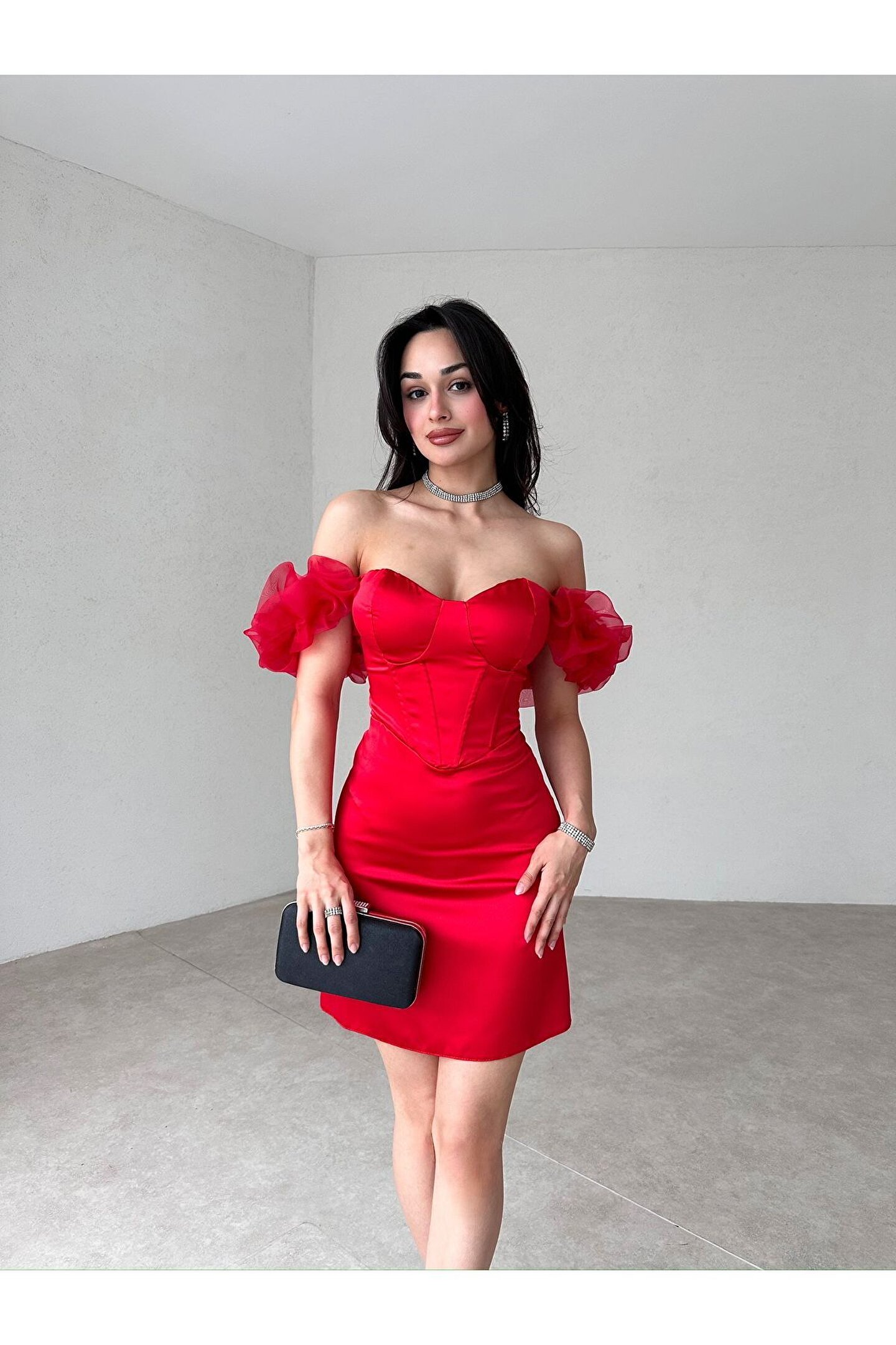 Genç ve tüm yaş gruplarına hitap eden, şık ve zarif tasarımıyla dikkat çeken mini kırmızı saten elbise; Düz kesimi ve slim kalıbı ile vücut hatlarınıza mükemmel uyum sağlayarak feminen bir siluet sunar; Dantel dokuma tipi, elbisenin zarif görünümünü artırırken, aynı zamanda sofistike bir hava katar; Ayarlanabilir kol korse detayı sayesinde farklı kol uzunluklarına kolayca uyum sağlar ve kişisel konforunuzu artırır; Mini boyu ile modern ve dinamik bir görünüm sunarken, şık ortamlarda göz alıcı bir stil oluşturmanızı sağlar;