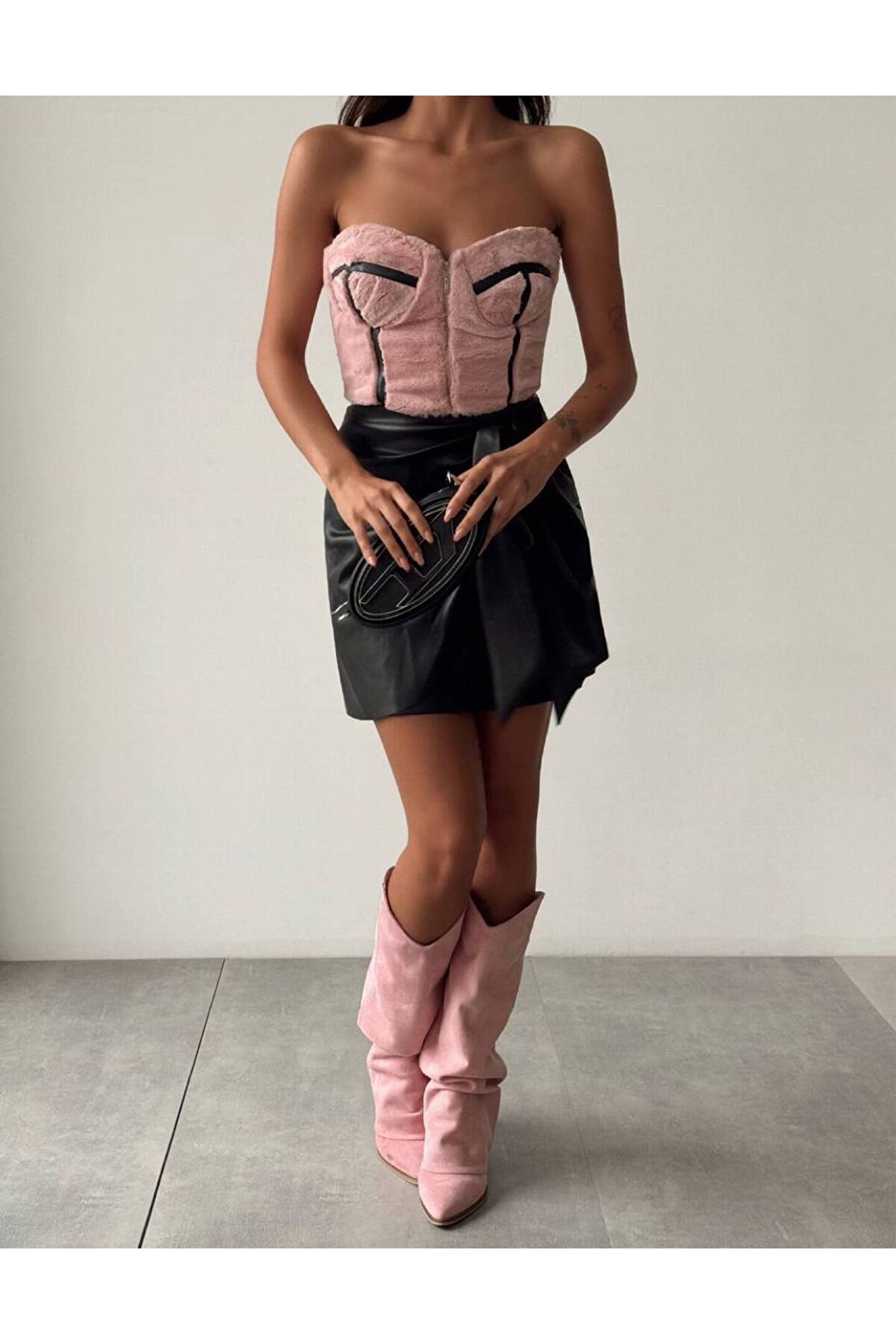 popibutik PELUŞ CROP DERİ ETEK 2 Lİ TAKIM