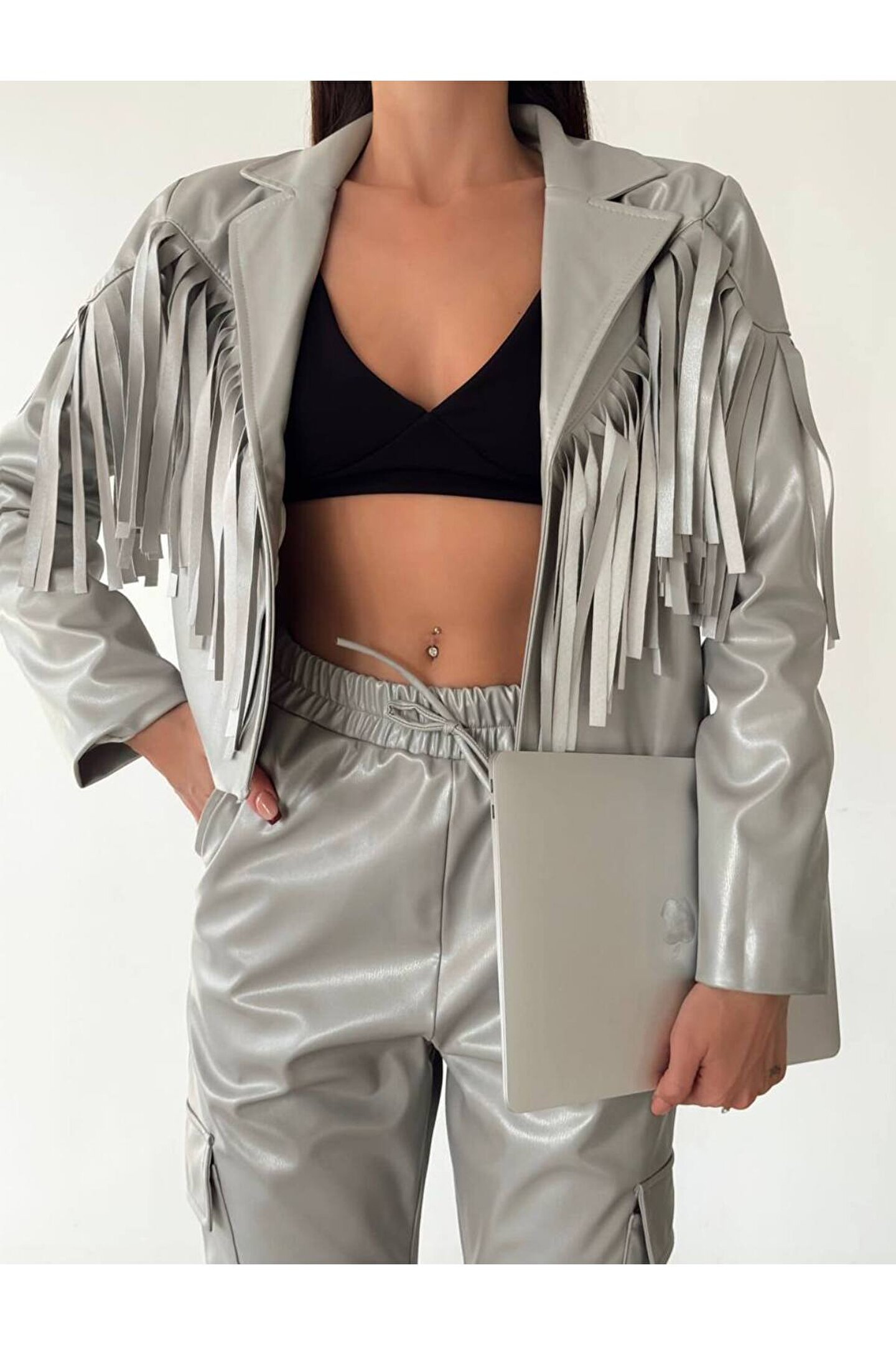 popibutik SAÇAKLI DERİ CEKET PANTOLON TAKIM