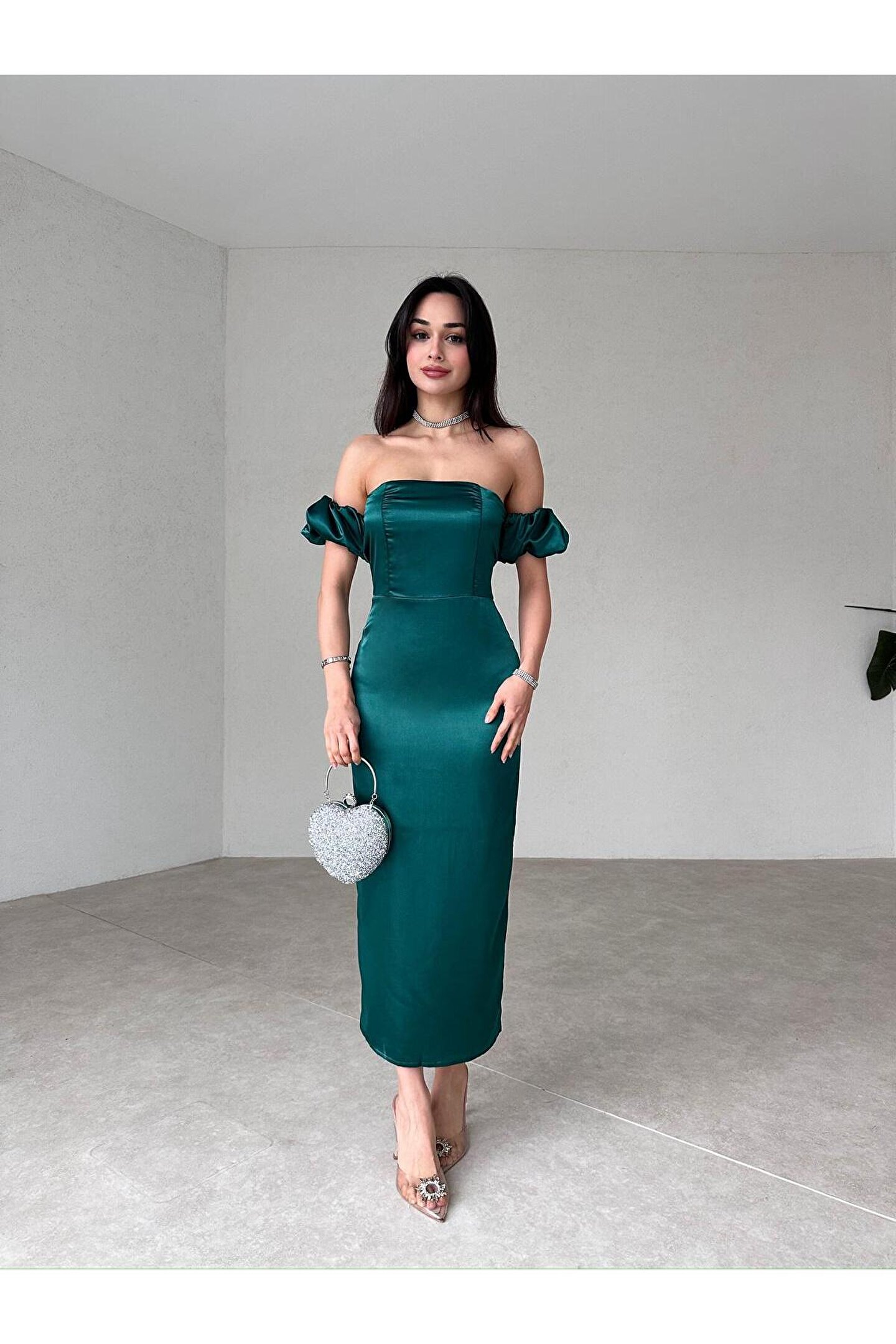 Midi Elbise tam kalıplıdır. ; Elbise göğüsten aşağı 114 cm uzunluğundadır. ; Elbise yırtmaç derinliği 33 cm uzunluğundadır. ; Elbise kumaşı esnek değildir. ; Elbise iç göstermez. ; Elbise saten kumaştır.. ; Sıklıkla kullandığınız bedeni tercih edebilirsiniz. ; Görseldeki model 170 cm 55 kg üzerindeki ürün S bedendir. ; Modelin kendi bedeni de S bedendir. ;