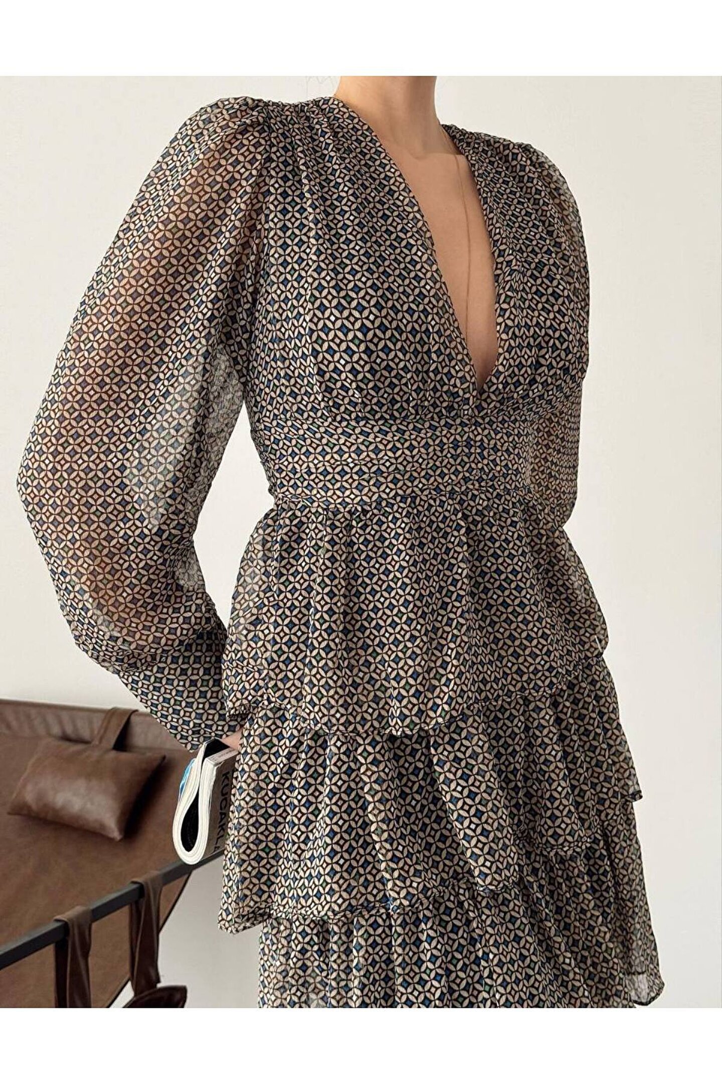 Zarif V yaka tasarımıyla feminen çizgiler ön plana çıkar.; Şifon kumaş yapısı sayesinde hafif ve rahat bir kullanım sunar.; Mini boyu ile modern ve dinamik bir görünüm kazandırır.; Dantel detayları ile sofistike bir dokunuş ekler ve göz alıcı bir parlaklık sağlar.; Her yaştan gençlerin tercih edebileceği düz kesim tasarım, geniş kullanım alanına sahiptir.; Slim kalıp, vücut hatlarını nazikçe sararak şık bir siluet oluşturur.;