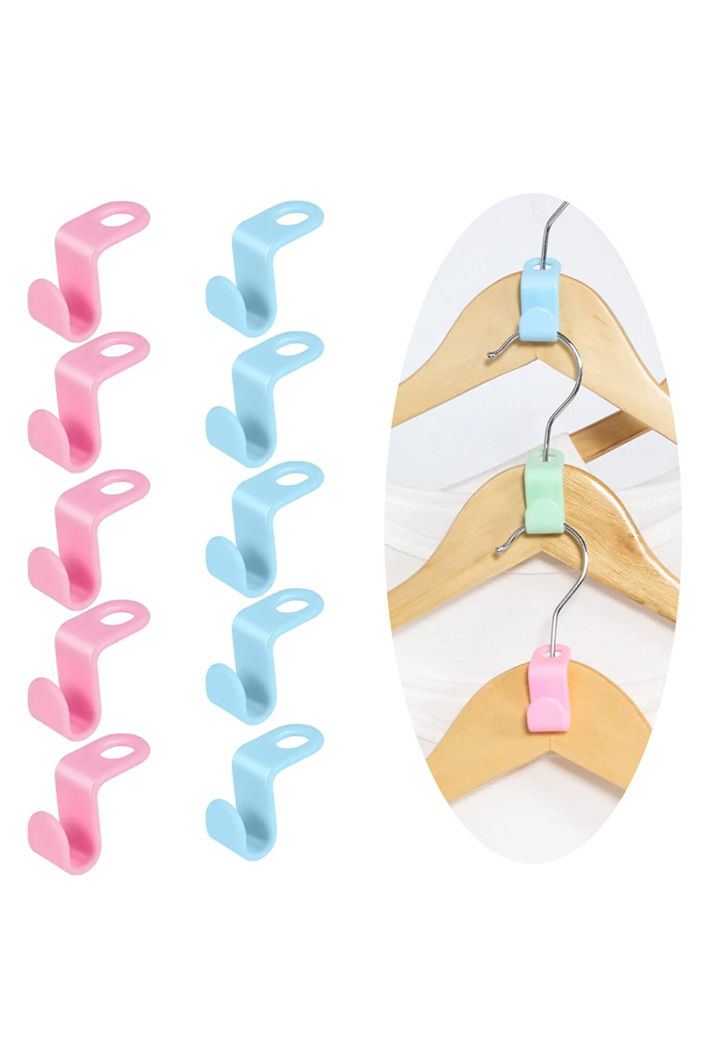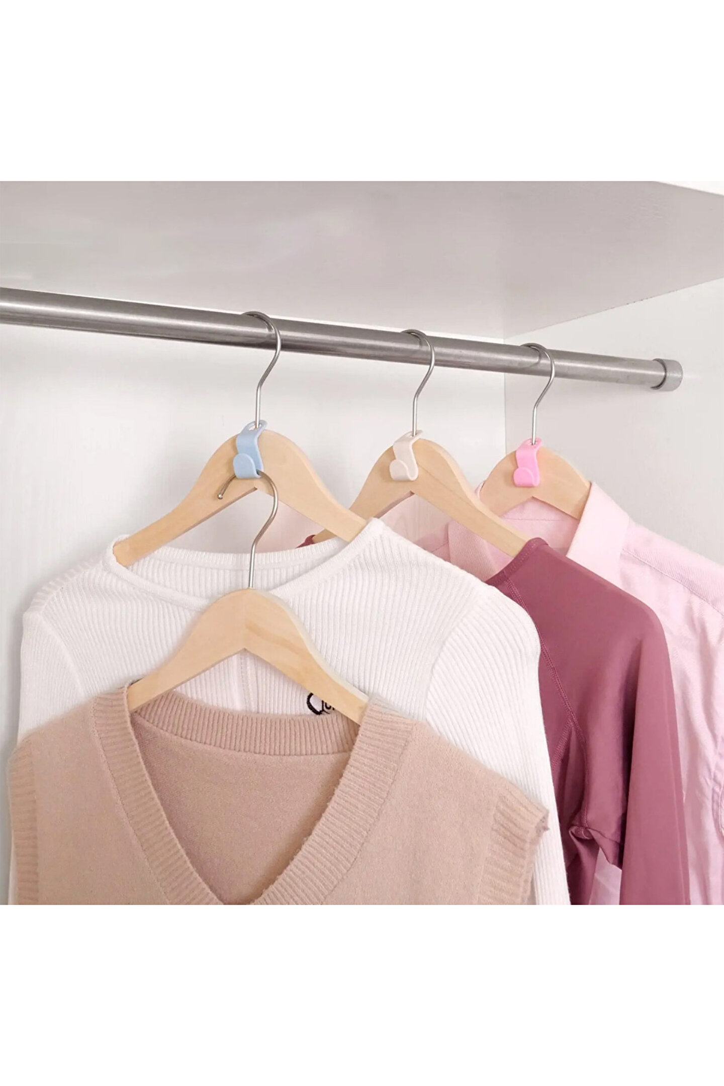 Gardrop Düzeninde Kolaylık: Askı konektörleri, gardırobunuzdaki kıyafetlerin düzenli bir şekilde yerleştirilmesini sağlar. Kıyafetleri düzenlemekle kalmaz, aynı zamanda kemer, çanta, kolye ve diğer aksesuarları asmak için de kullanılabilirler, böylece ihtiyacınız olan kıyafetleri hızlıca bulabilirsiniz.
