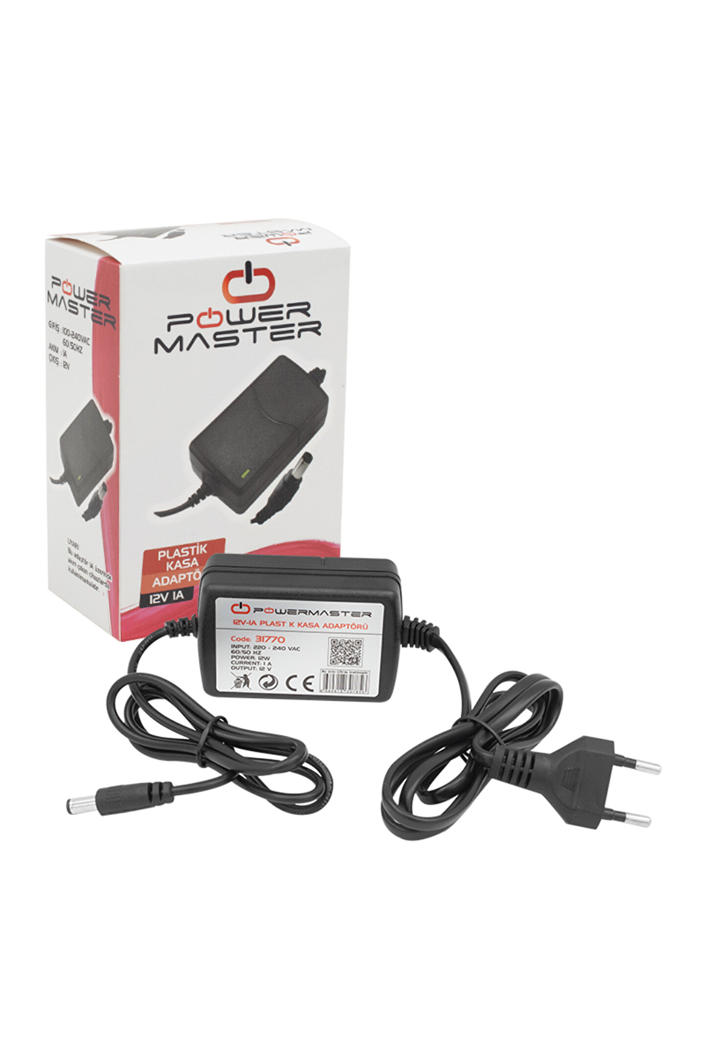 Powermaster PM-31770 12 Volt - 1 Amper - 12 Watt 5.5*2.5 Mm Uçlu İki Ucu Kablolu Masaüstü Adaptör