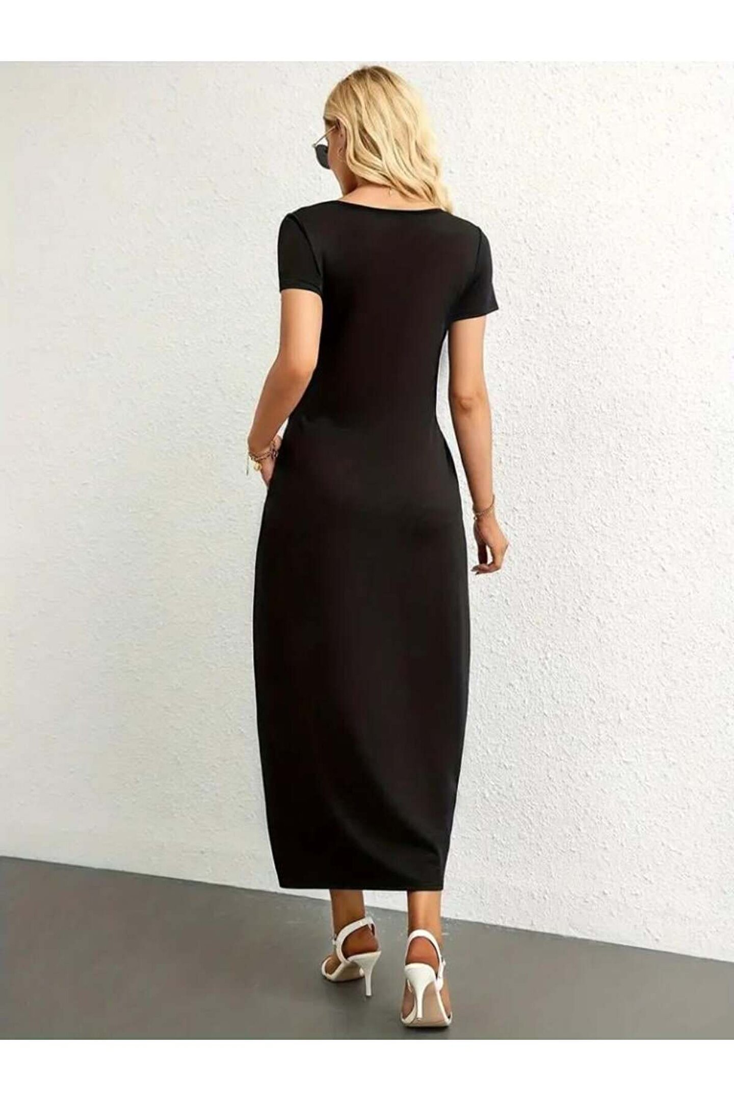 Kadın Kısa Kollu Yakası Yuvarlak Cepli Viskon Elbise