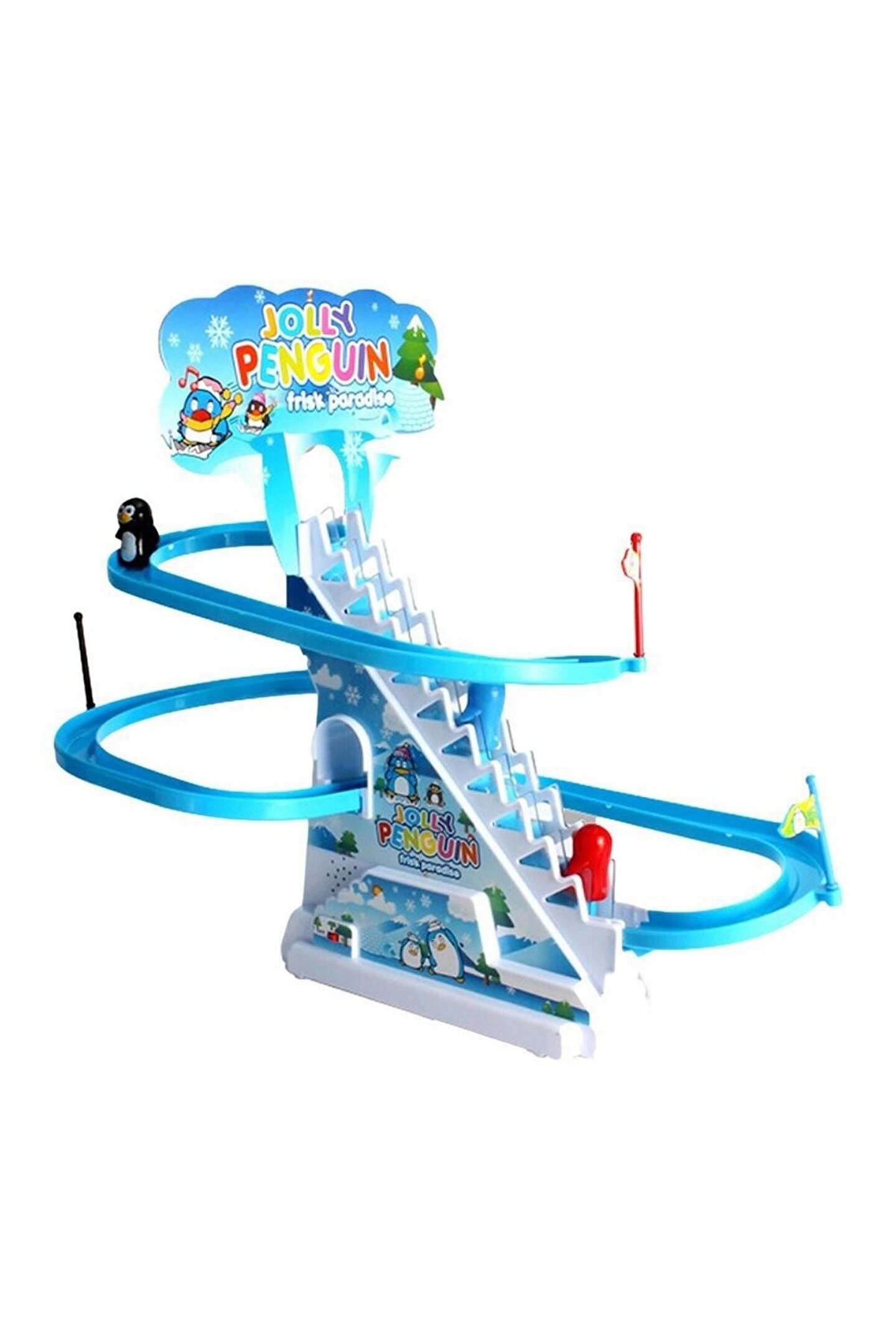 Küçük Oyuncak Merdivenli Penguen Pilli Sesli Işıklı Kaydıraklı Oyuncak Dön Dolaş Oyunu