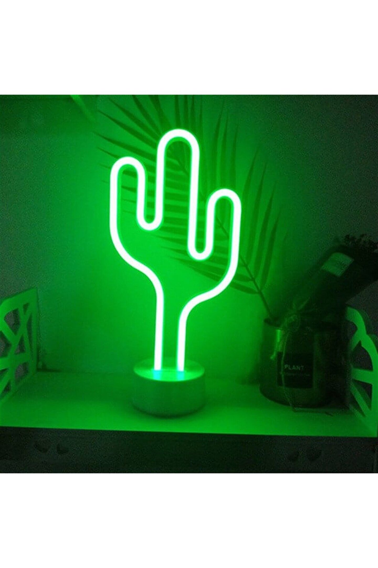 Himarry Neon Işıklı Kaktüs Masa Gece Lambası USB+Pil Dekoratif Aydınlatma