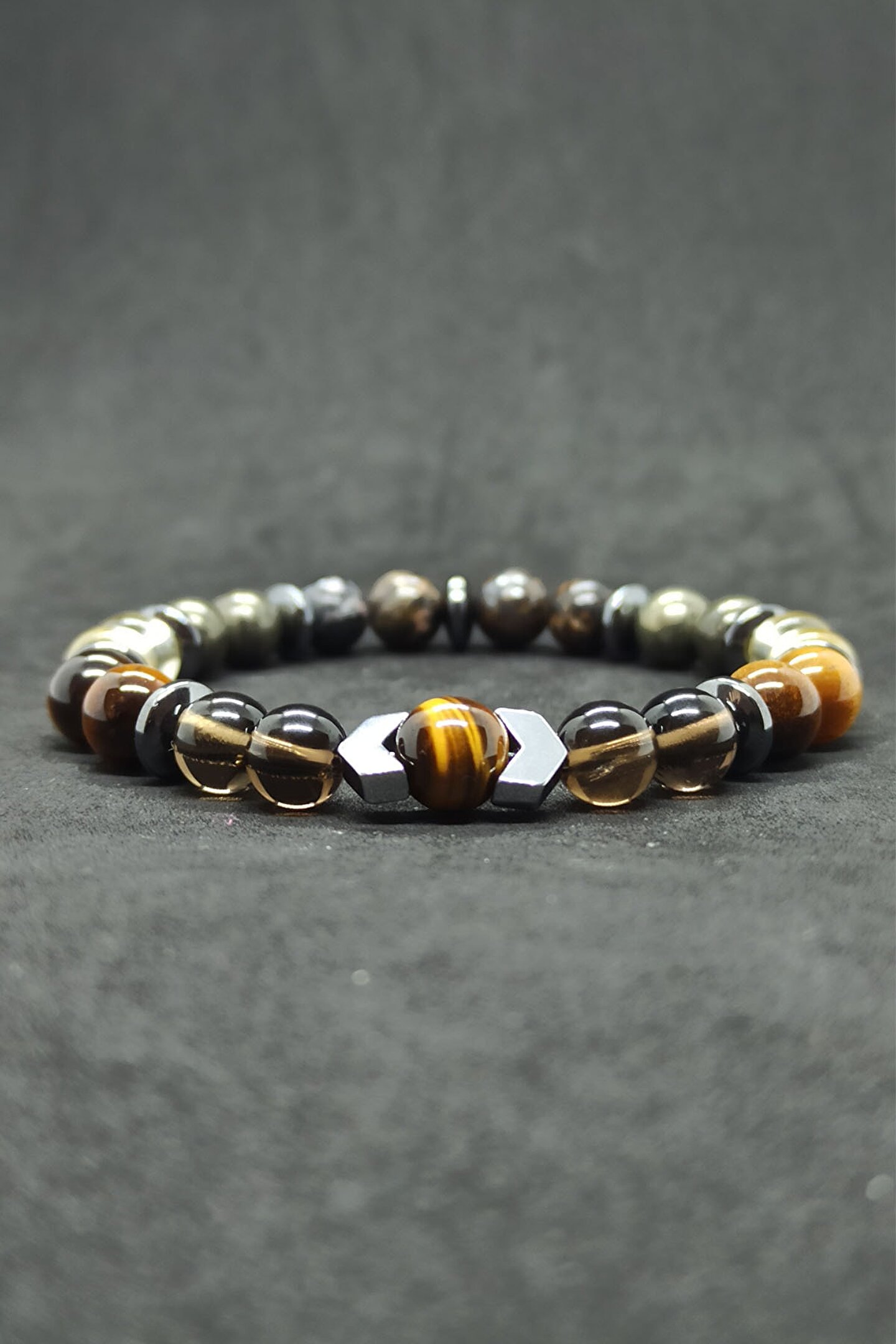 Dumanlı kuvars pirit karma doğal taş erkek bileklik kaplan gözü taşı astım hastaları için faydası olduğuna inanılan bir taştır. ; Kişinin karar vermesine yardımcı olur. ; Kişinin algı gücünü arttırır. ; Hafızayı kuvvetlendirir. ; Inatçılığı azaltır ve duygusal bakımdan dengeleyici bir taştır. ; Sahiplenme duygusunu güçlendirir. ; Para kazanmak için gerekli el becerilerini arttırır. ; Hayatlarında değişiklik yapmayı düşünenlerin tercih etmesi gereken taş kaplan gözü taşıdır. ; Beynin sağ ve sol loblarının dengeli çalışmasını sağlar. ; Kanı toksinlerden temizlediği bilinmektedir. ; Sindirim sistemini düzenleyici bir etkisi vardır. ; Kemik kırıklarının kaynamasına yardım eder dumanlı kuvras: Iyileştirici taşlar arasında yer alır. ; Sinir sistemini güçlendirir. ; Kişiye sakinlik verir. ; Kolay iletişim kurmanıza yardımcı olur. ; Odaklanmaya yardımcı olur. ; Tiroid bezini korur ve iyileştirici özelliği vardır. ; Radyasyona karşı koruyucudur. ; Sinirsel gerginliğe ve panik atak hastalığına iyi gelir. ; Sitrin taşı: Zihni berraklaştırır. ; Üzerinde taşıyan kişiye mutluluk ve neşe duyguları verir. ; Sitrin taşı bolluk ve bereketi kendisine çeker. ; Başarı getirdiğine inanılır. ; Sanatçılar tarafından tercih edilen bir taştır,yaratıcılığı artırdığına inanılır. ; Kişinin kendisini ifade etmesini kolaylaştırır. ; Bağışıklık sistemini güçlendirir. ; Anti oksidan etkilidir. ; Böbrek, kolon sindirim organları, ciğerler ve kalp için faydalı bir taştır. ; Bilekliklerimiz ortalama 17-18 cm ebatındadır pirit taşı: Kişiye canlılık ve yaşama sevinci verir. ; Kişideki idare gücünü arttırıcı etkilere sahiptir. ; Bu özelliğinden dolayı genellikle yönetici konumundaki kişiler tarafından tercih edilir. ; Negatif enerjiye karşı mükemmel bir kalkandır. ; Yetersizlik duygusunu yenmeye yardım eder. ; Kronik yorgunluk gidermeye yardımcıdır. ; Kişinin uyumlu ve sosyal olmasına yardımcı olur. ; Dikkat dağınıklığına iyi gelir. ; Zihni belirsiz düşüncelerden arındırır. ; Hafızaya iyi gelir. ; Öğrenmeyi kolaylaştırır, özgüveni arttırır rodonit taşı: Ruhsal enerjiye sahiptir. ; Uyum ve huzur verir. ; Sorunlarla başa çıkmanıza yardımcı olur. ; Günlük yaşamda başarılı olmaya yardımcı olur. ; Ruhsal,zihinsel ve fiziksel canlılığınızı arttırır. ; Sınav öncesi stresi ortadan kaldırır.Zihin açıklığı verir. ; Öğrenme yeteneğini arttırır. ; Korkuyu azaltmaya yardımcı olur. ; Neşe,keyif,memnuniyet,aşk ve sevgi sembolüdür,kullananın bu özellikleri kazanmasına yardım eder. ; Boğaz ve gırtlak iltihaplarının tedavisine yardım eder. ; Anksiyete ve depresyon tedavisinde destek amaçlı kullanılmaktadır. ; Hematit taşı kişinin kendisine güven duymasına ve kontrol etmesine yardımcıdır. ; Birey ve toplum arasındaki ilişkilerde denge görevi görür. ; Olumsuz enerjiyi gidermeye yardımcıdır. ; Ilişkiler üzerinde olumlu etkisi vardır tüm çakraları dengeler. ; Uykusuzluğa iyi gelir. ; Kan dolaşım sistemini düzenler, kalbi sağlıklı tutar, kan basıncını dengeler. ; Mafsal romatizması ağrılarını hafifletir. ; Harap olmuş, hasar görmüş dokuların yeniden oluşmasına yardım eder. ; Iskelet sistemi hastalıklarına iyi gelir.;