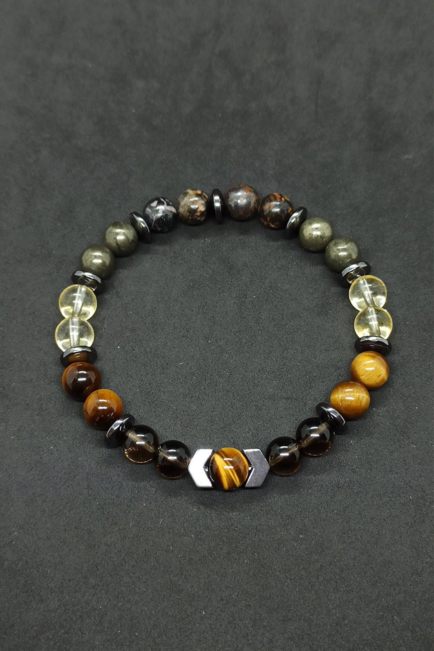 Dumanlı kuvars pirit karma doğal taş erkek bileklik kaplan gözü taşı astım hastaları için faydası olduğuna inanılan bir taştır. ; Kişinin karar vermesine yardımcı olur. ; Kişinin algı gücünü arttırır. ; Hafızayı kuvvetlendirir. ; Inatçılığı azaltır ve duygusal bakımdan dengeleyici bir taştır. ; Sahiplenme duygusunu güçlendirir. ; Para kazanmak için gerekli el becerilerini arttırır. ; Hayatlarında değişiklik yapmayı düşünenlerin tercih etmesi gereken taş kaplan gözü taşıdır. ; Beynin sağ ve sol loblarının dengeli çalışmasını sağlar. ; Kanı toksinlerden temizlediği bilinmektedir. ; Sindirim sistemini düzenleyici bir etkisi vardır. ; Kemik kırıklarının kaynamasına yardım eder dumanlı kuvras: Iyileştirici taşlar arasında yer alır. ; Sinir sistemini güçlendirir. ; Kişiye sakinlik verir. ; Kolay iletişim kurmanıza yardımcı olur. ; Odaklanmaya yardımcı olur. ; Tiroid bezini korur ve iyileştirici özelliği vardır. ; Radyasyona karşı koruyucudur. ; Sinirsel gerginliğe ve panik atak hastalığına iyi gelir. ; Sitrin taşı: Zihni berraklaştırır. ; Üzerinde taşıyan kişiye mutluluk ve neşe duyguları verir. ; Sitrin taşı bolluk ve bereketi kendisine çeker. ; Başarı getirdiğine inanılır. ; Sanatçılar tarafından tercih edilen bir taştır,yaratıcılığı artırdığına inanılır. ; Kişinin kendisini ifade etmesini kolaylaştırır. ; Bağışıklık sistemini güçlendirir. ; Anti oksidan etkilidir. ; Böbrek, kolon sindirim organları, ciğerler ve kalp için faydalı bir taştır. ; Bilekliklerimiz ortalama 17-18 cm ebatındadır pirit taşı: Kişiye canlılık ve yaşama sevinci verir. ; Kişideki idare gücünü arttırıcı etkilere sahiptir. ; Bu özelliğinden dolayı genellikle yönetici konumundaki kişiler tarafından tercih edilir. ; Negatif enerjiye karşı mükemmel bir kalkandır. ; Yetersizlik duygusunu yenmeye yardım eder. ; Kronik yorgunluk gidermeye yardımcıdır. ; Kişinin uyumlu ve sosyal olmasına yardımcı olur. ; Dikkat dağınıklığına iyi gelir. ; Zihni belirsiz düşüncelerden arındırır. ; Hafızaya iyi gelir. ; Öğrenmeyi kolaylaştırır, özgüveni arttırır rodonit taşı: Ruhsal enerjiye sahiptir. ; Uyum ve huzur verir. ; Sorunlarla başa çıkmanıza yardımcı olur. ; Günlük yaşamda başarılı olmaya yardımcı olur. ; Ruhsal,zihinsel ve fiziksel canlılığınızı arttırır. ; Sınav öncesi stresi ortadan kaldırır.Zihin açıklığı verir. ; Öğrenme yeteneğini arttırır. ; Korkuyu azaltmaya yardımcı olur. ; Neşe,keyif,memnuniyet,aşk ve sevgi sembolüdür,kullananın bu özellikleri kazanmasına yardım eder. ; Boğaz ve gırtlak iltihaplarının tedavisine yardım eder. ; Anksiyete ve depresyon tedavisinde destek amaçlı kullanılmaktadır. ; Hematit taşı kişinin kendisine güven duymasına ve kontrol etmesine yardımcıdır. ; Birey ve toplum arasındaki ilişkilerde denge görevi görür. ; Olumsuz enerjiyi gidermeye yardımcıdır. ; Ilişkiler üzerinde olumlu etkisi vardır tüm çakraları dengeler. ; Uykusuzluğa iyi gelir. ; Kan dolaşım sistemini düzenler, kalbi sağlıklı tutar, kan basıncını dengeler. ; Mafsal romatizması ağrılarını hafifletir. ; Harap olmuş, hasar görmüş dokuların yeniden oluşmasına yardım eder. ; Iskelet sistemi hastalıklarına iyi gelir.;