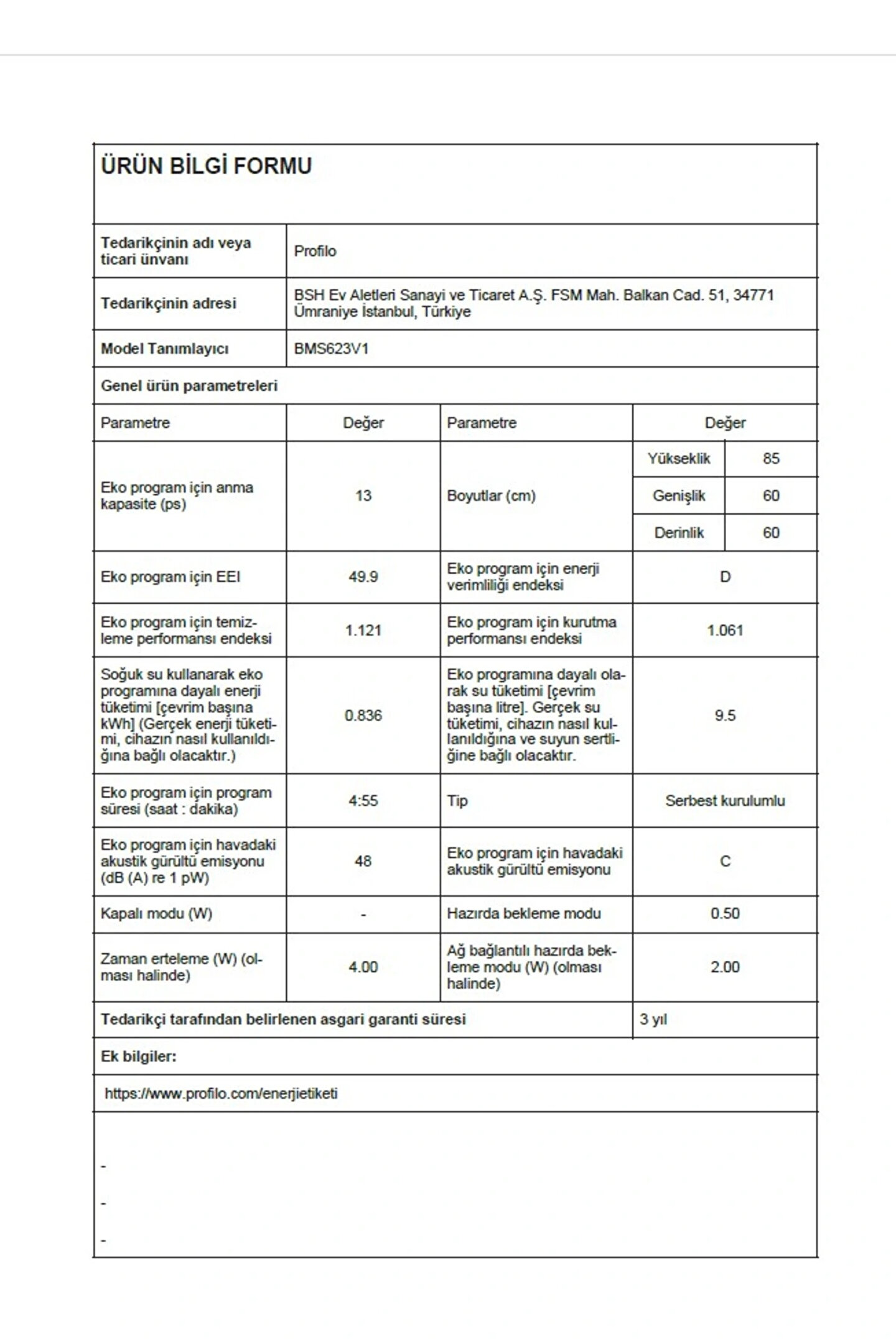 Profilo BMS623V1 6 Programlı Bulaşık Makinesi