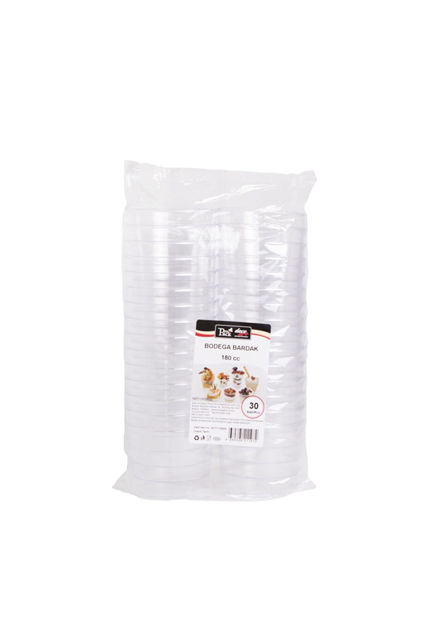 Ürün ölçüsü : 180 cc Paket içi: 30 adet Renk : Şeffaf %100 polistiren (ps)'den üretilmiştir. ; Ürün kullanım alanı : Davet,organizasyon ve sunumlarınızda soğuk ve sıcak her türlü yiyecek için kullanımı uygundur. ; Ürünlerimizin tamamı gıda ile temasa uygundur. ; tek kullanımlıktır.;