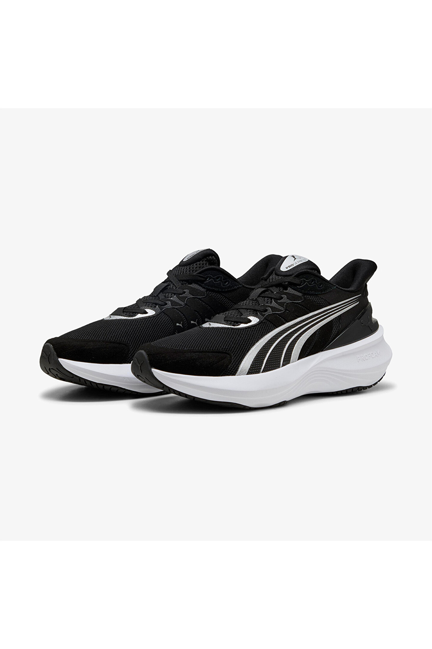 310780_12-ÜRÜN HİKAYESİ Emniyet kemerini bağla ve PUMA'nın en yeni modeliyle ritmi hisset.; Duyarlı yastıklama için PROFOAM, çok yüzeyli tutuş gücü için PROTREAD ve gelişmiş destek için TPU topuk özelliklerine sahiptir.; Her koşuyu çevikliğin ve tarzınla fethetmeye hazır ol.; ÖZELLİKLER & FAYDALAR ProFoam: Anında yastıklama ve konforlu bir yürüyüş hissi sunan PUMA'ya özel tüy gibi hafif, itiş gücü yüksek EVA orta taban çözümü Bu ayakkabının üst yüzeyi en az %30 geri dönüştürülmüş malzemeden üretildi.; DETAYLAR Bu ürün dana derisi ve tekstil materyaller içermektedir.; Normal genişlik Bağcıklı kapama tasarımı Yastıklama seviyesi: Orta PUMA marka detayları
