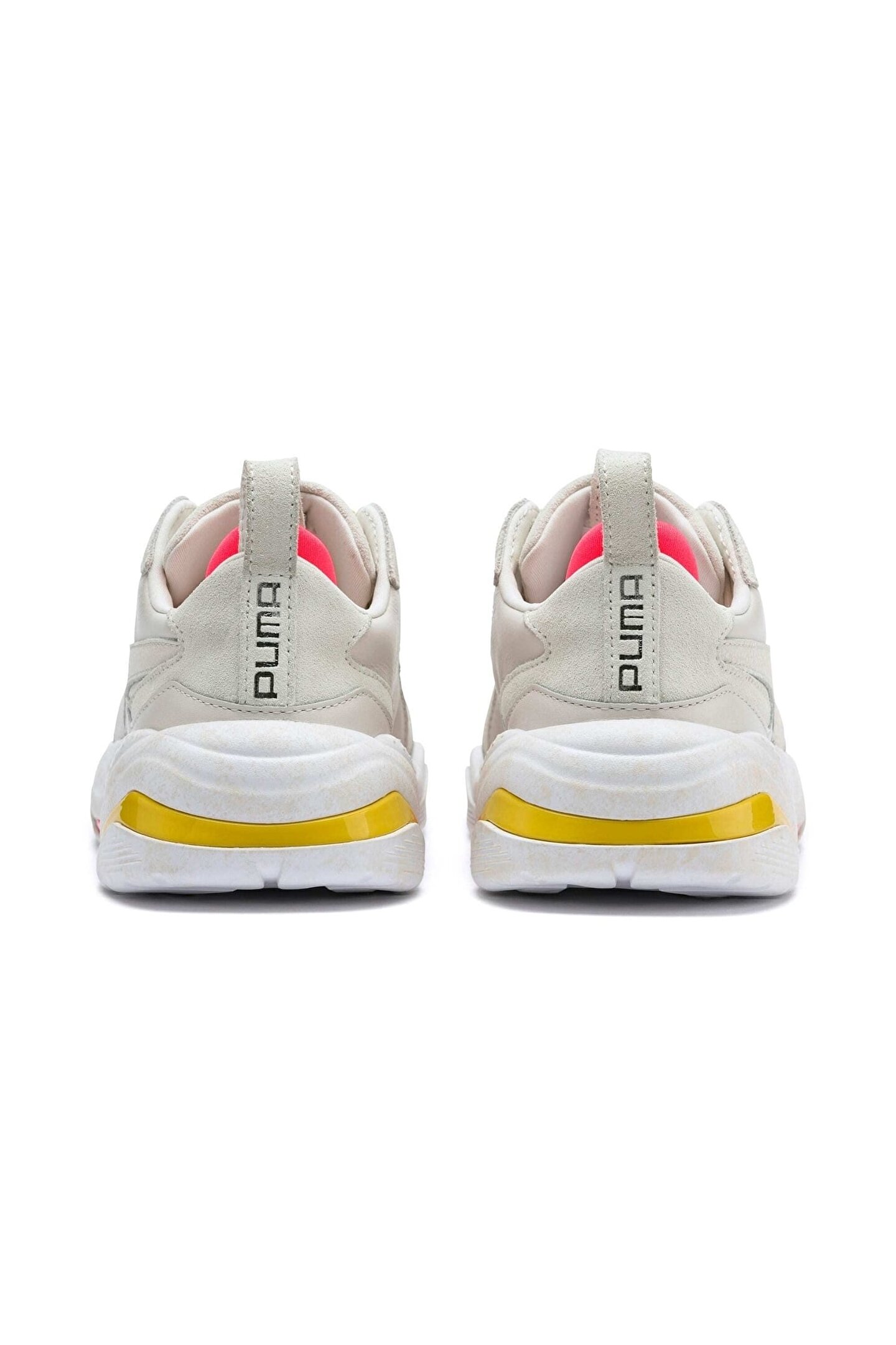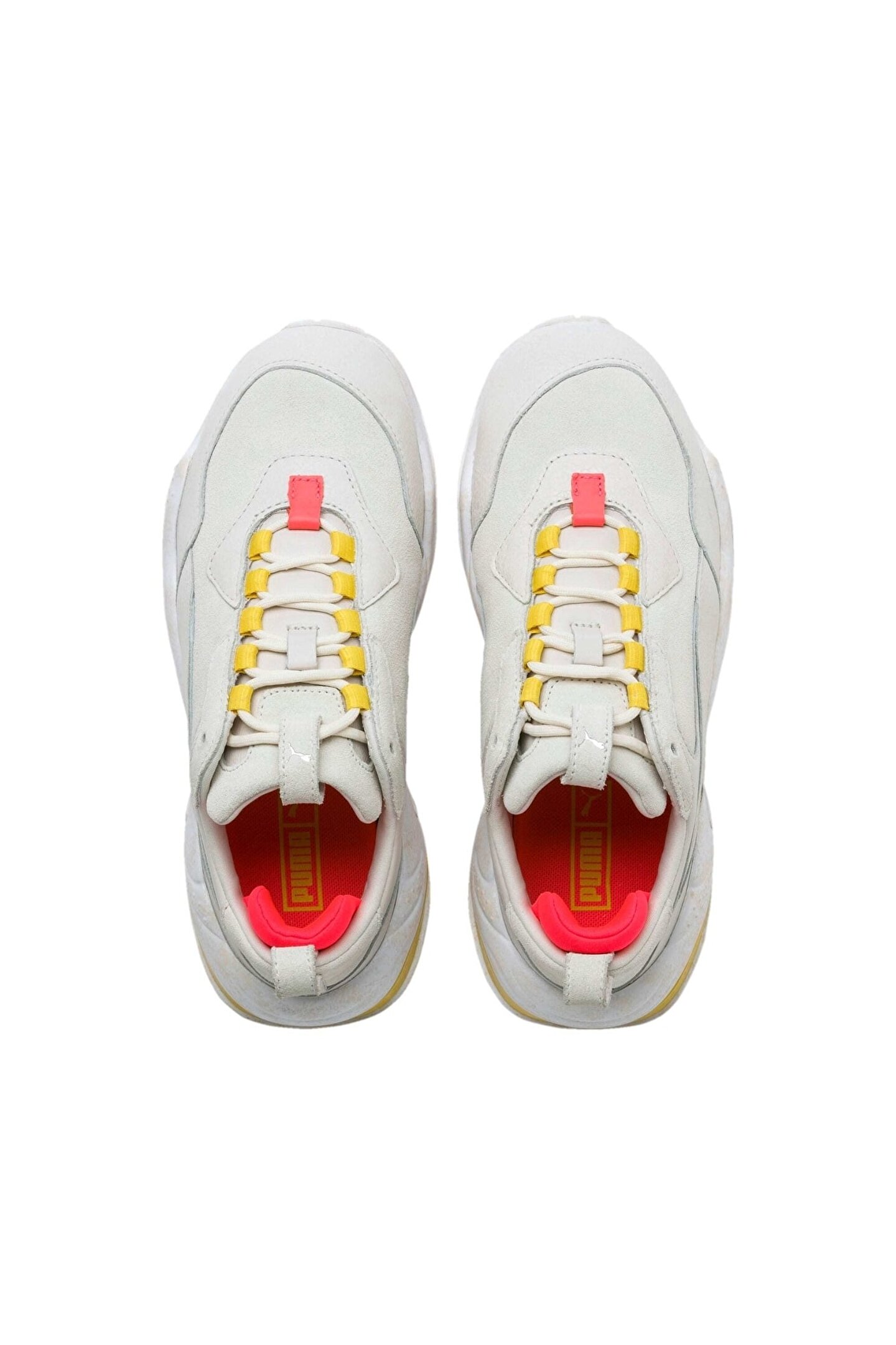 369978_02; ÜRÜN HİKAYESİ Thunder Distressed Kadın Ayakkabı'nın yapılandırılmış likra ve sentetik panelden oluşan süet dış yüzeyi modele endüstriyel bir hava veriyor; Bu estetiğin bir parçası olarak yıpranmış görünümlü bir orta taban kullanılırken, IMEVA yastıklama özellikliği rahat bir yürüyüş sağlıyor; Modelde kavrayış sunan kauçuk dış taban bulunuyor; Dil şeridinde yer alan ve hemen göze çarpmayan PUMA Cat Logosu ise görünümü minimalist bir düzeyde tutuyor; ÖZELLİKLER + FAYDALAR IMEVA: PUMA'nın tüy gibi hafif ve rahat bir performans hissi sağlayan orta taban teknolojisi DETAYLAR Likra ve sentetik parçalı süet dış yüzey Kavrayış sağlayan kauçuk dış taban Ayağı iyi kavrayan bağcık tasarımı PUMA CELL koleksiyonundan alınan ilham Ortada ve yanlarda klasik PUMA Formstrip deseni Dil şeridinde PUMA Cat Logosu;