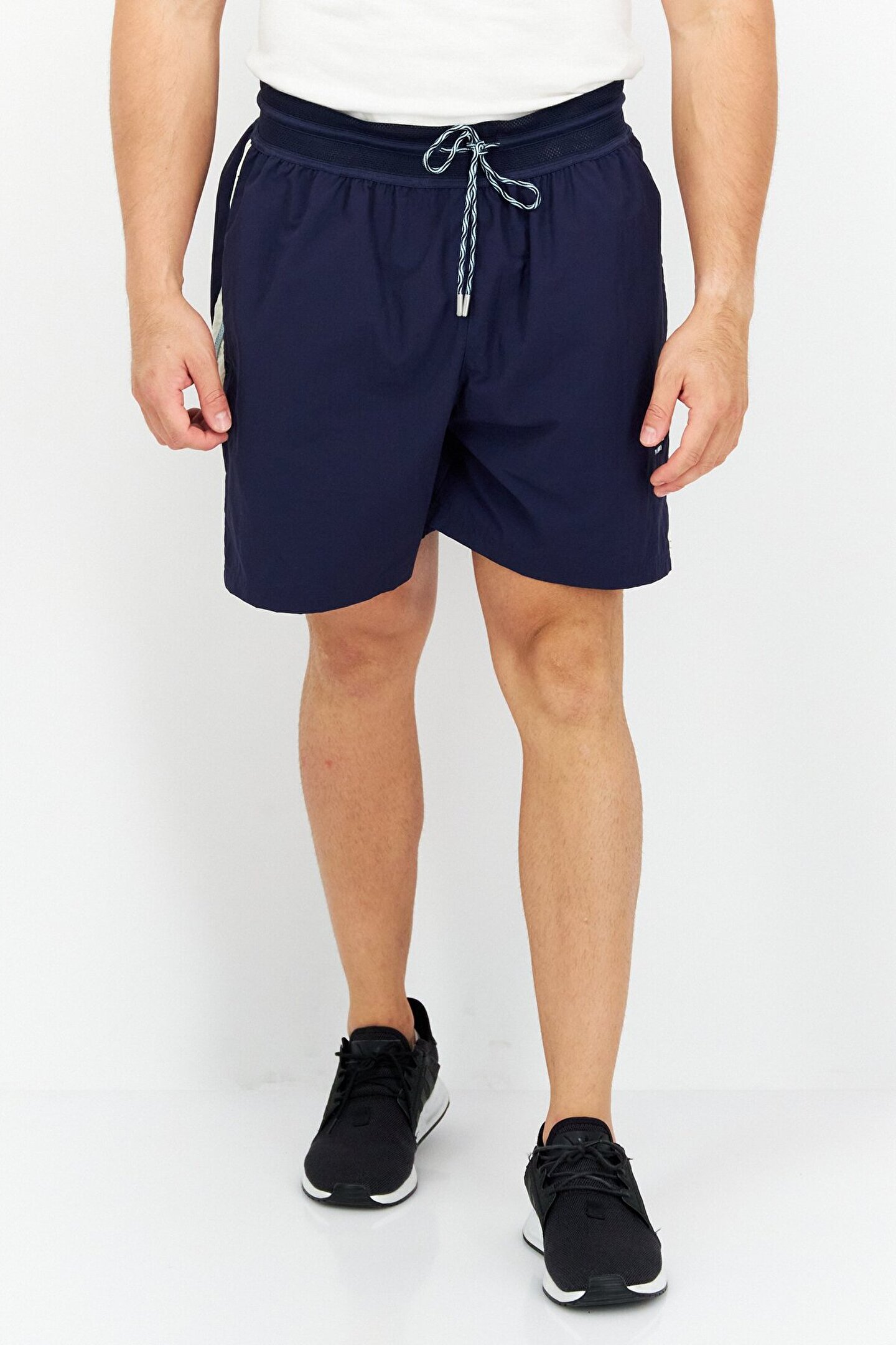 Erkek Spor Giyim Fit İşlemeli Logo Antrenman Şortu, Lacivert Kombo