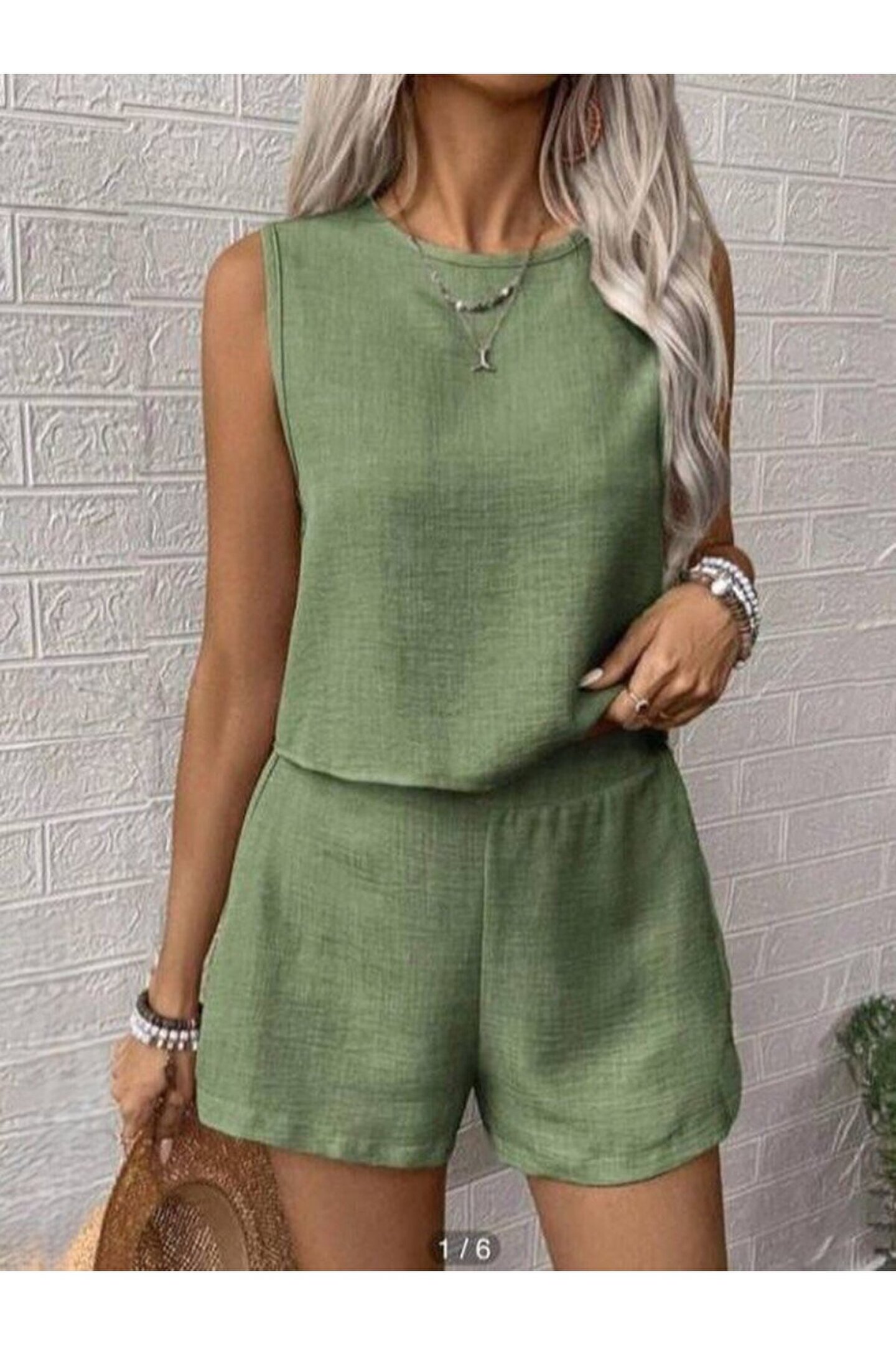 Kadın Keten Kumaş Bisiklet Yakakolsuz Bluz Ve Kısa şort Ikili Takım