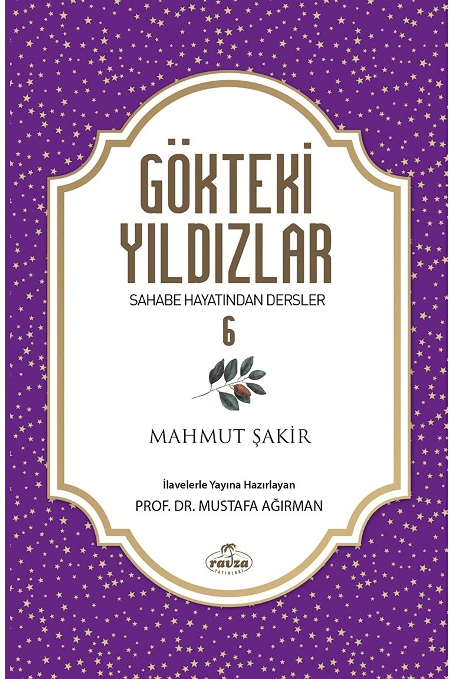Gökteki Yıldızlar 6 - Mahmut Şakir - Mustafa Ağırman Yüce Allah’ın, kendilerinden razı olduğu ve bunu da Kur’anı Kerim’de açıkladığı bu nesli bizim tanımamız gerekir.; Bu nesli tanımak, onların hayatını okumakla ve onların dünyasına girmekle olur.; Onların Hz.; Peygamber’e verdikleri destek bizi de aşka getirir inşaallah.; Belki biz de, bu sayede uyuşukluktan, meskenetten zilletten kurtulur, aziz oluruz.; Haydin öyleyse, hep birlikte, bu kitabı baştan sona kadar üzerinde düşüne düşüne okuyalım.; Sahabei kiram efendilerimizin dünyasına girelim.; Mekke’de, Medîne’de, Hicret’te, Bedir’de, Uhud’da, Hendek’te, Tebükle, Hayber’de, Hudeybiye’de, Huneyn’de, Mescid’de, Suffa’da, Veda Haccı’nda onlarla birlikte olalım.; Elinizdeki kitabın yazarı Mahmüd Şakir, bu işi güzel başarmış; kitabı eline alan herkesi Hz.; Peygamber’in ve sahabenin dünyasına taşıyor.; Sizi, elinize aldığınız zaman okumadan bırakamayacağınız bir kitapla baş başa bırakıyorum.; Sizi, Yüce Allah tarafından seçilmiş bir peygamber ve seçilmiş bir nesil ile birlikte olmaya davet ediyorum.; Buyurun, bu kitabı hep birlikte okuyalım.; Bu ciltteki Sahabiler: Es’ad b.; Zürare (r.; a) Utbe b.; Ğavzan (r.; a) Muaz b.; Cebel (r.; a) Zeyd b.; Sabit (r.; a) Ubey b.; Ka’b (r.; a) Ebu Sehre b.; Ebi Ruhm (r.; a) Ebu Seleme elMahzumi (r.; a)