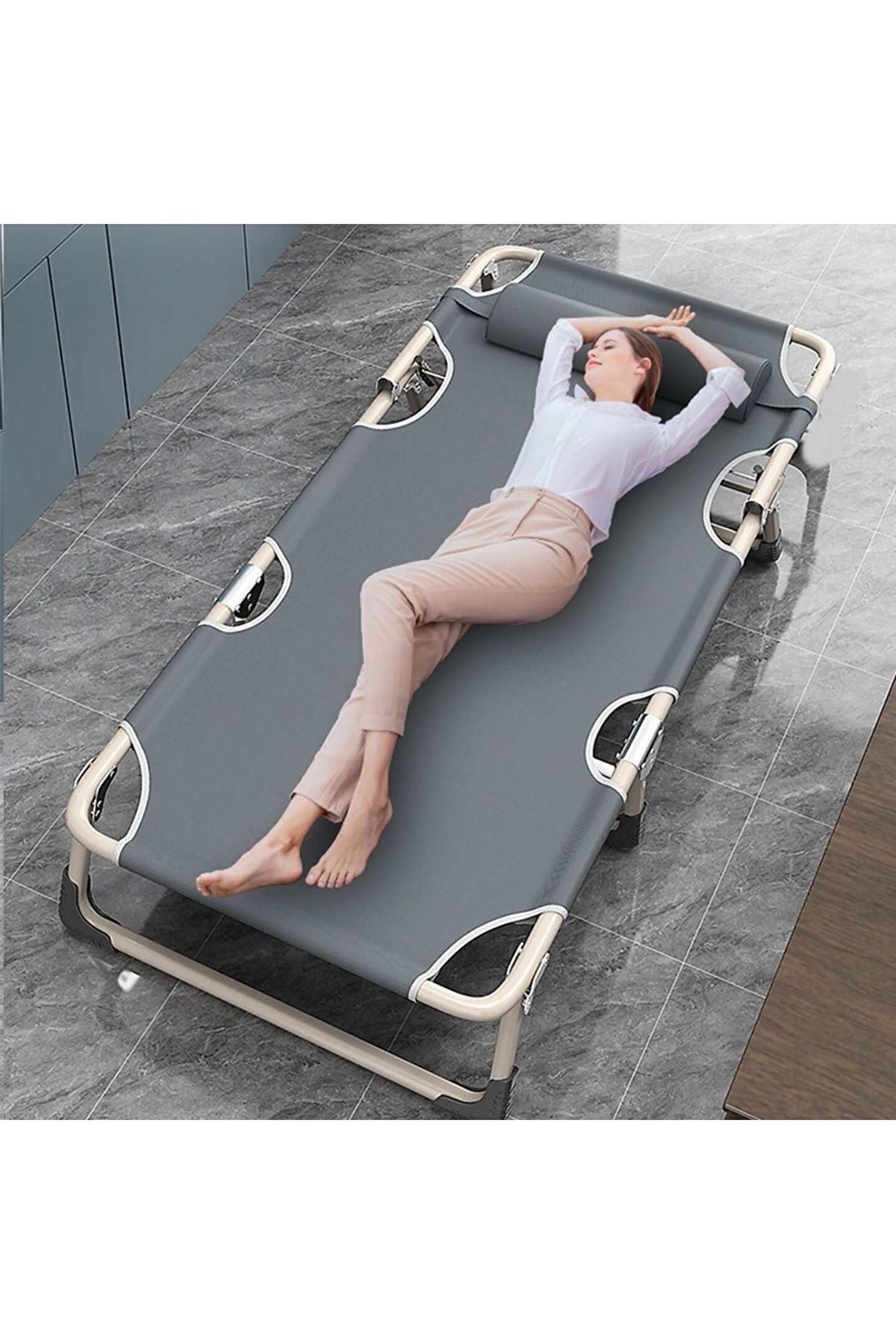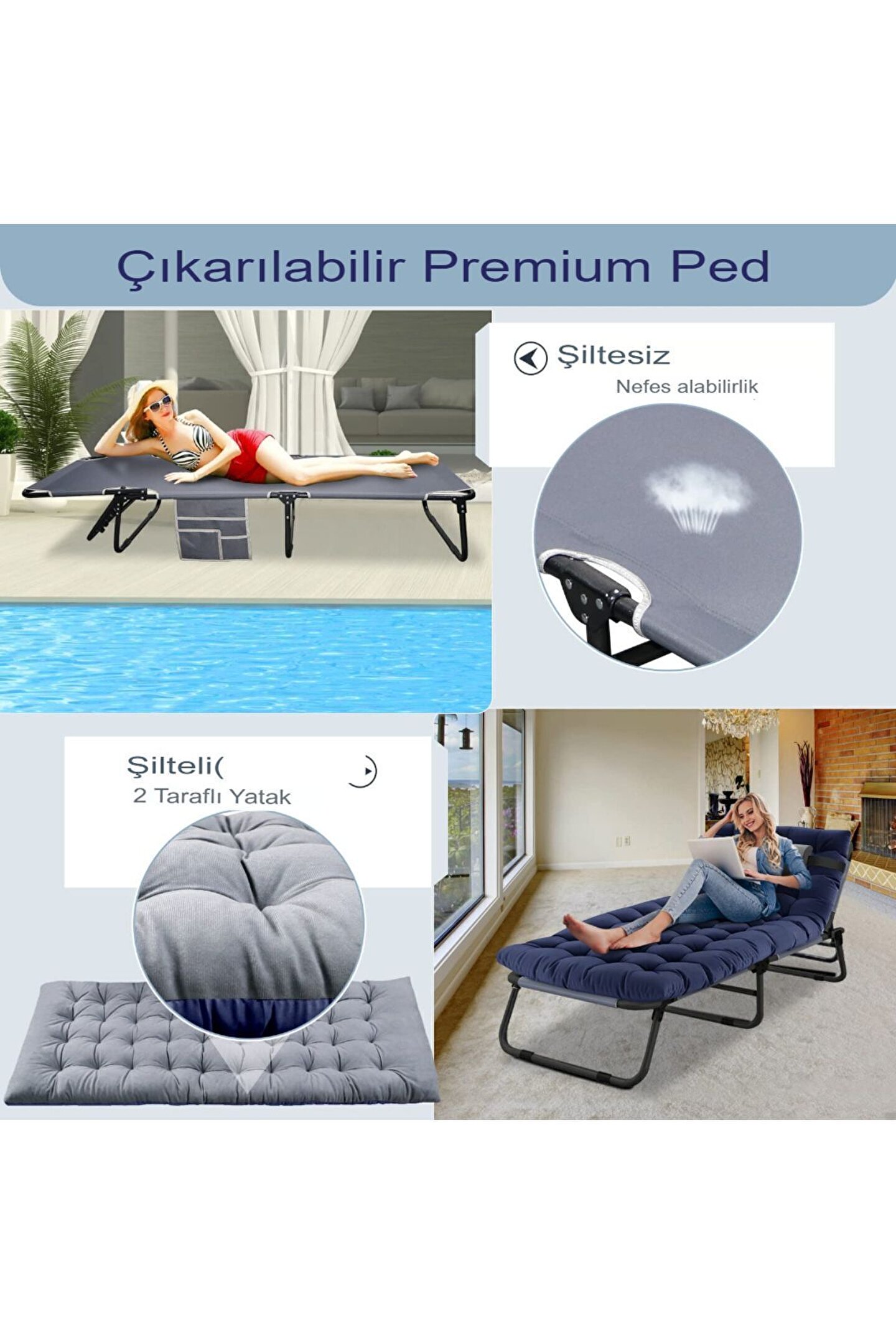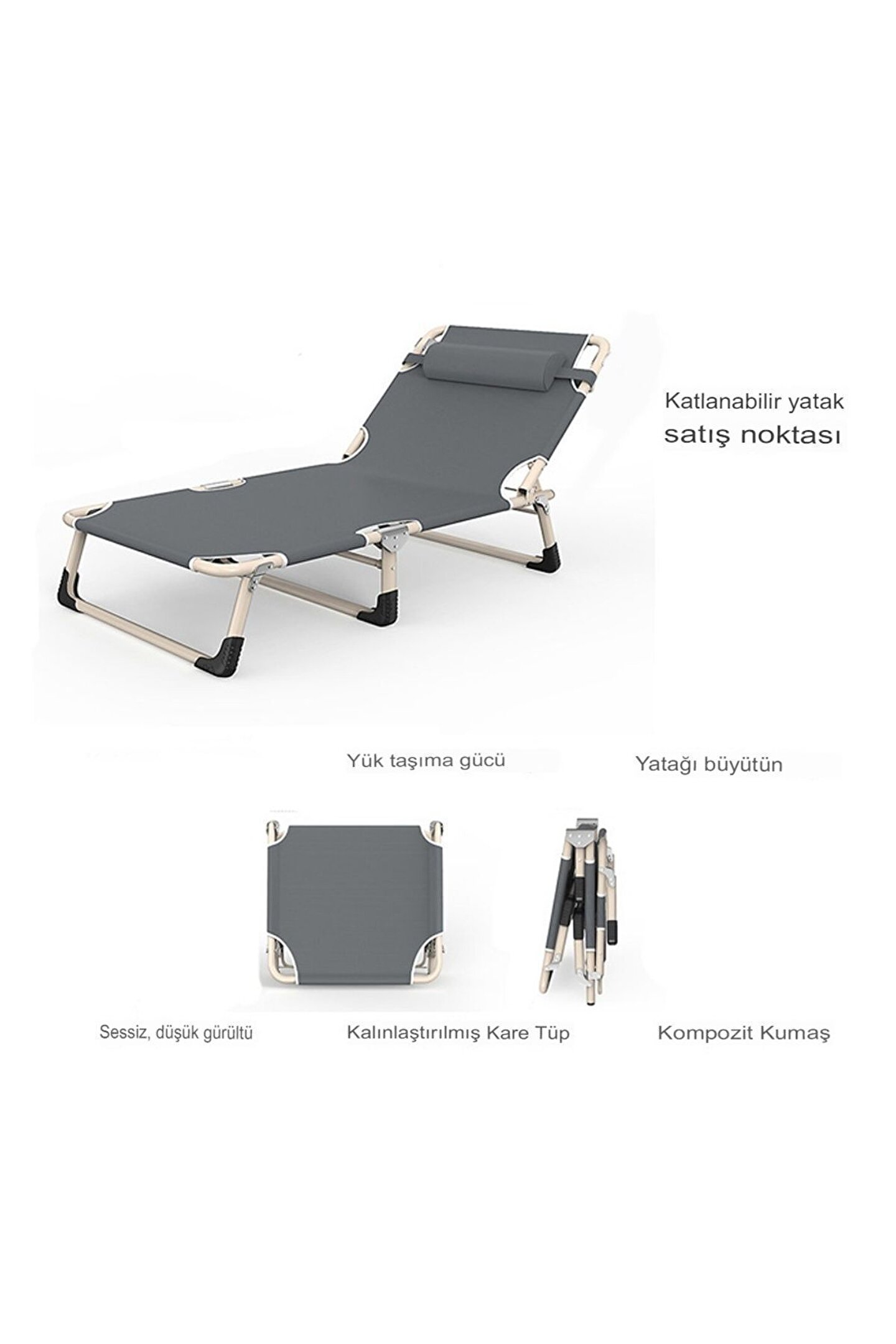 Ürün Hakkında: Detaylar görüntüler Boyutu:175*58*31cm Kaliteli malzeme:Yastık: yüksek elastik sünger Yatak: kalın sünger/3D nefes alabilir pamuk döşek Kumaş malzeme: Stirling kumaş/kompozit kumaş Braket: Gri çelik boru/karbon çelik Çok fonksiyonlu: 4 pozisyon ayarlanabilir sağlam ve dayanıklı Güvenli ve rahat Kurulumu ve saklanması kolay Çok amaçlı Tipi:Kolay taşıma, katlama, taşınabilir, ayarlanabilir katlanır uzanmış şezlong plaj yatağı Katlanır yataklar çeşitli boyutlara ayarlanabilir Geleneksel yatak yüzeyi Oxford kumaş yatak yüzeyidir ve dört ayaklı olan, toplam 4 destek ayağı ile kafa için bir yatak destek ayağı vardır. ; toplamda üç destek ayağı vardır. ; Yuvarlak boru çapı 22mm, kalınlığı 0.7mm, kare boru çapı 25*16mm, kalınlığı 0.7mm. ; Bu tip çeşitli pamuk pedleri, statik basınç yatağı 300kg kapasitelidir. ; Yükseltilmiş pamuklu ped, rahat ve insan vücudu eğrisine sıkıca oturan, size beşik benzeri sürükleyici bir uyku deneyimi sunmak için rahat uyumanızı sağlar Misafirler yurtlar, kamp için harika ve kullanışlı bir yatak. ; Plajda, havuz başında, terasta veya kamp gezilerinde dinlenmek veya sosyalleşmek için ideal bir şezlong. ; Üç katlı tasarım yerden tasarruf sağlar, katlanması kolay, taşınması kolay, genişleyecek kadar büyük, farklı durumların ihtiyaçlarını karşılayacak.;