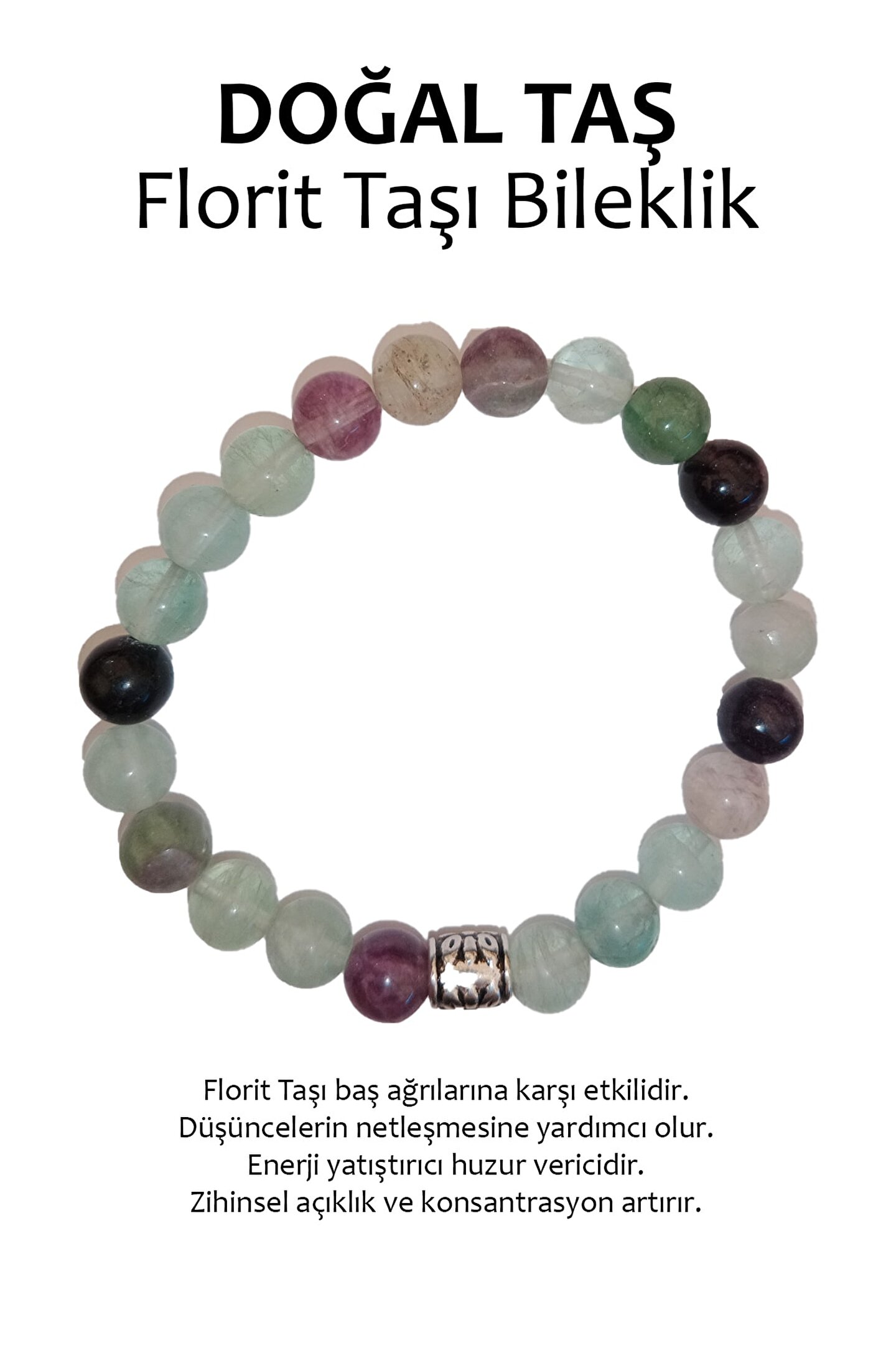 Doğal taş bileklik, şıklığınızı tamamlayacak zarif bir aksesuardır; Florit taşı, benzersiz renk tonları ve desenleriyle dikkat çeker; Hakiki doğal taş kullanımı, her bilekliğe otantik bir dokunuş katar; Doğal taş bileklik, hem günlük kullanım hem de özel günler için idealdir;