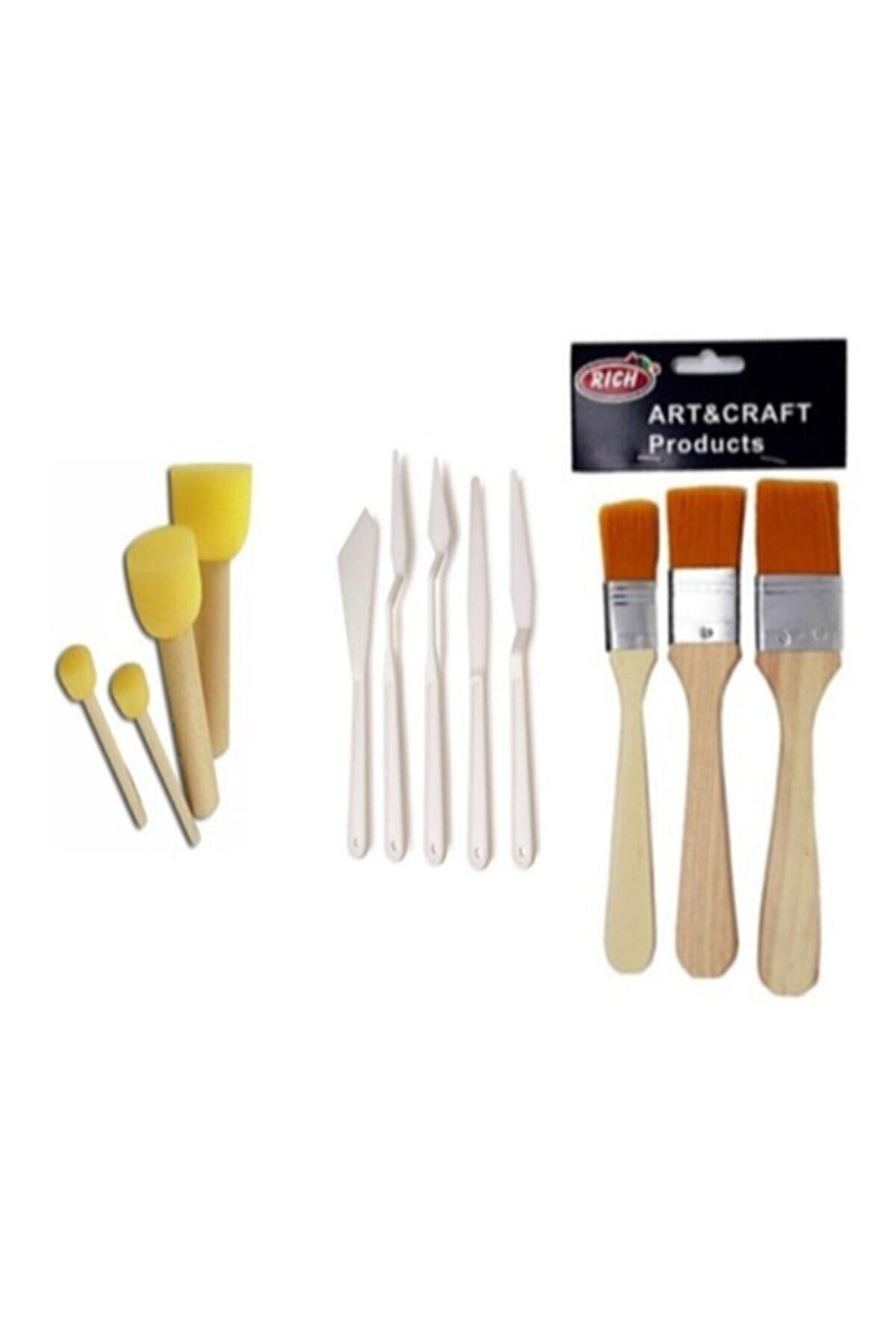 paket içerisinde 1 adet 3 lü ipek (sentetik) fırça takımı ; 1 adet ponpon fırça takımı ; 1 adet plastik spatula takımı bulunmaktadır.