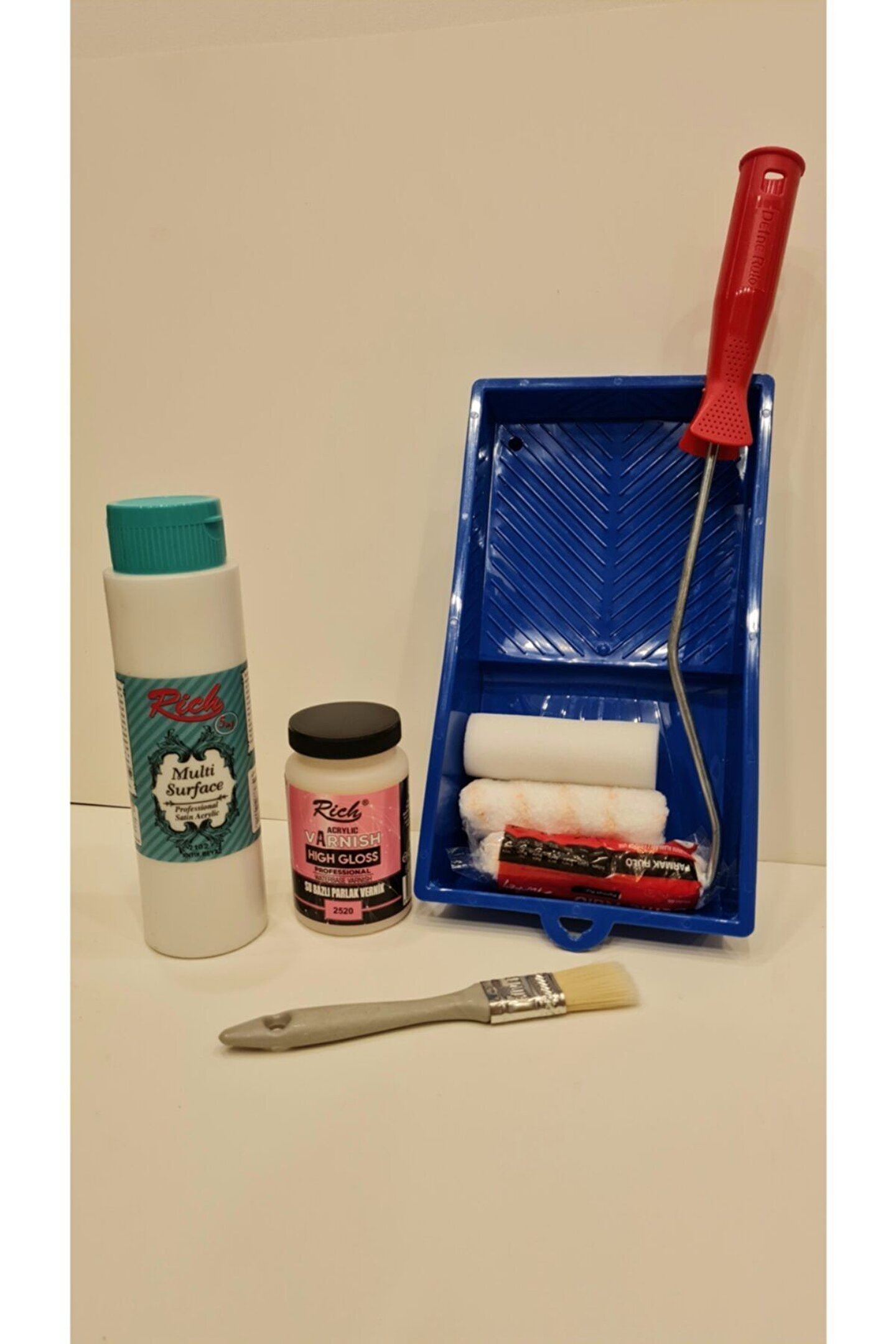 Multi Surface 500cc (750 gr ) Antik Beyaz Dolap Boyama Seti ( Rulo Yumuşak Fırça Vernik )