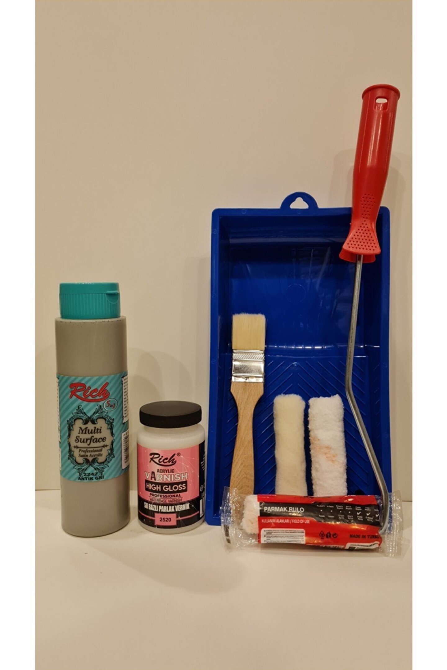 Multi Surface 500cc (750 Gr ) Antik Gri Dolap Boyama Seti ( Yeni Multi Rengi )