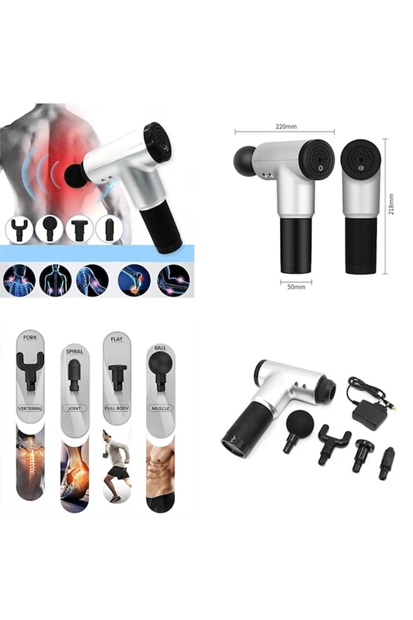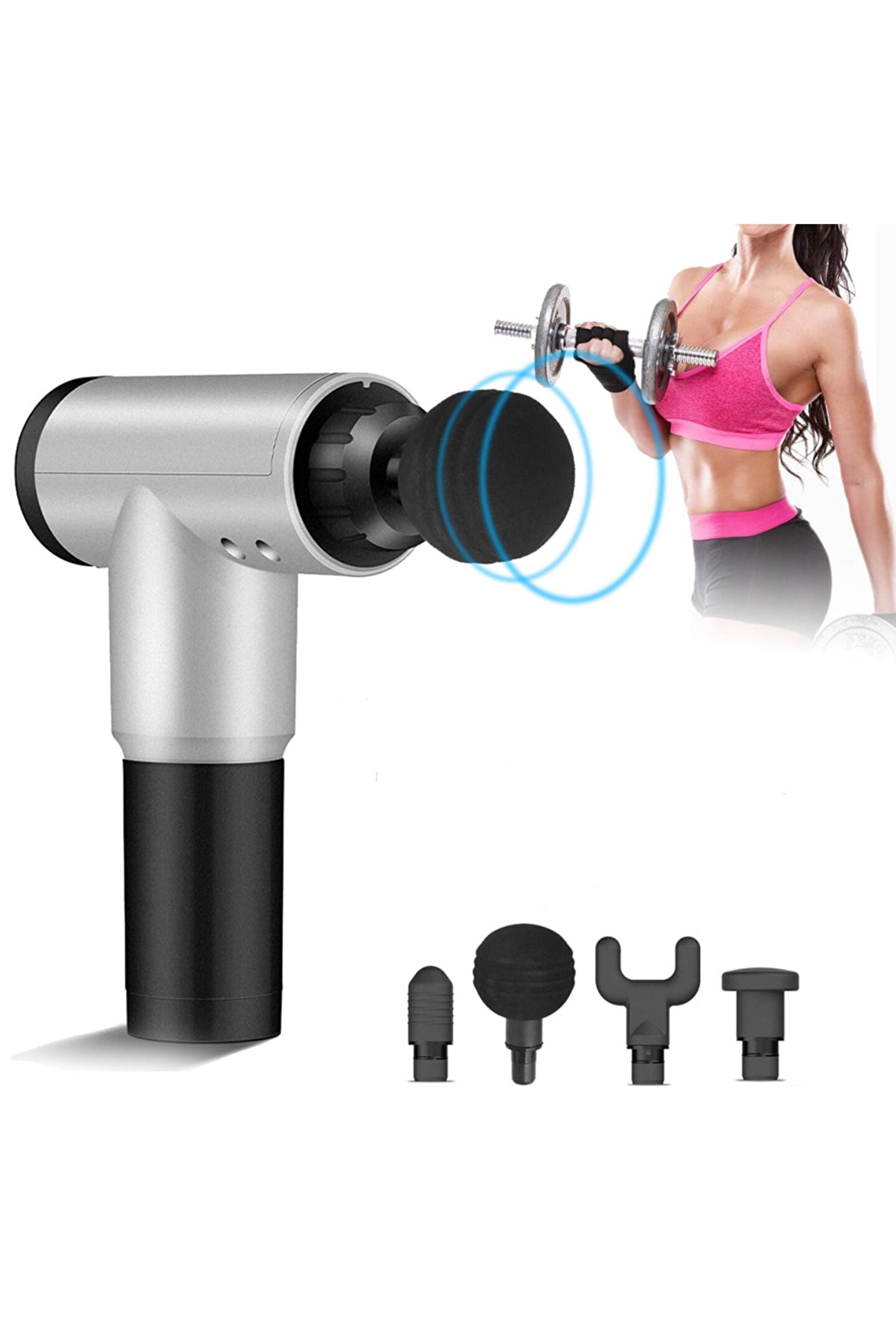 Sporcu masaj aleti 4 başlıklı şarjlı titreşimli yoğurmalı masaj tabancası sporcu masaj aleti 4 başlıklı 45 db çok sessiz çalışır. 6 farklı hız ve hassasiyet ayarı sayesinde her kas grubu için farklı masaj deneyimi sağlar 4 farklı masaj başlığı ile vücudunuzdaki tüm kas gruplarına uygun masajı yapabilir. Led strip göstergeleri sayesinde hız hassasiyet ve batarya göstergesi anında görülebilir. Genellikle fitnes yapan sporcuların çok tercih ettiği bir üründür. Günlük, iş sonrası yada spor sonrası uygulanacak terapi tüm vücudunuzu rahatlatır. Özellik: Farklı ihtiyaçları karşılamak için 4 farklı masaj başlığı ve 6 vitesli ayar içerir. Kas sertliğini ve ağrısını etkili bir şekilde azaltın ve kan dolaşımını artırın. Aşırı ısınma koruması ve aşırı ısınma koruması gibi güvenlik cihazları kullanmak güvenlidir. Egzersiz sonrası yorgunluktan kurtarma, spor yaralanmalarından iyileşme, iyileşme sırasında ağrı kesici ve inflamatuar yanıtın azalması için uygun ürün içeriği 1 adet masaj tabancası 4 ad masaj başlığı 1 adet çalıştırma kablosu 1 adet kullanma kılavuzu