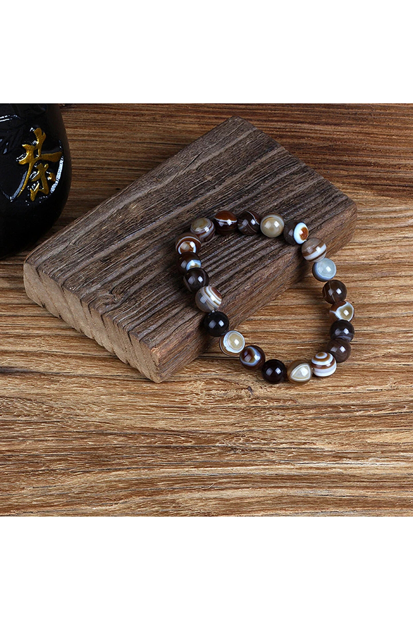 Sertifikalı Doğal Kahverengi Çizgili Akik Bileklik