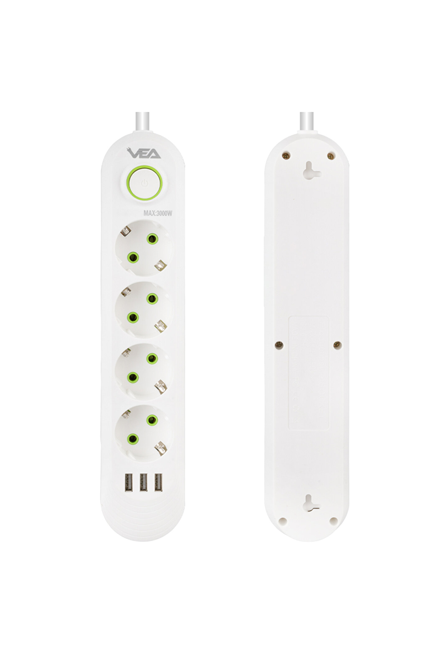 va-21560 4lü 1.5 metre kablo shopzumlu 3 usbli beyaz shopzum akim korumali priz