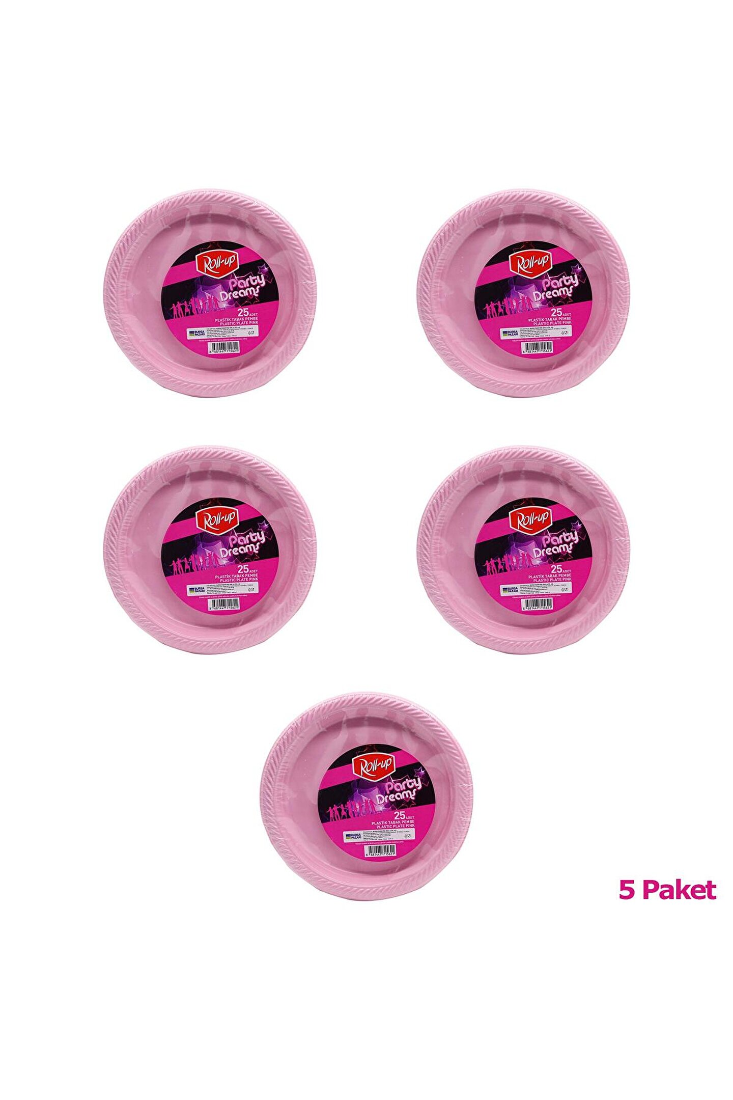 Roll-Up Parti Tabak Malzeme : Plastik Tür : Tek Kullanımlık Form : Yuvarlak Renk : Pembe Çap : 22 Cm. Paket İçi : 25 Adet Tabak Koli İçi : 5 Paket Toplam : 125 Adet Tabak