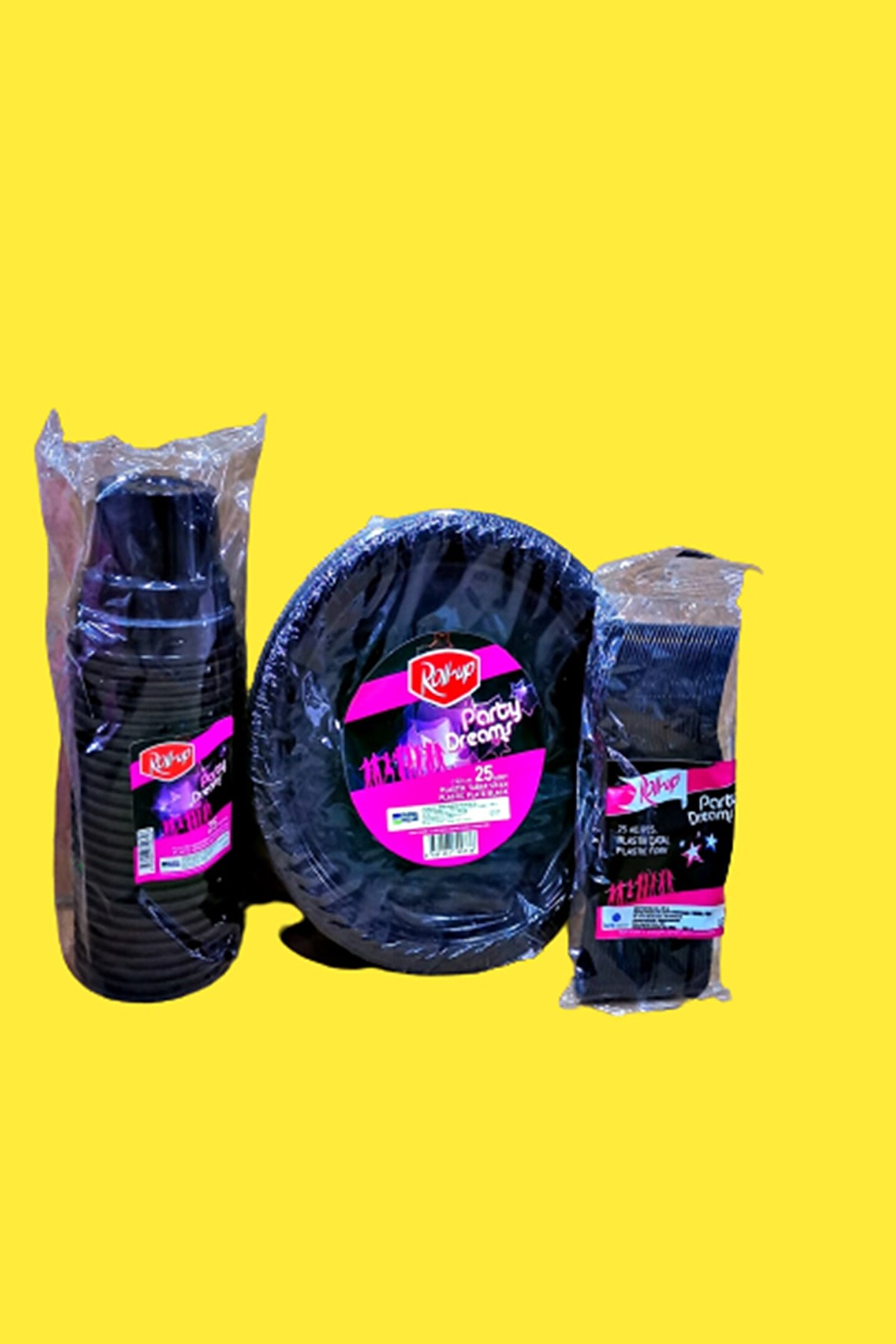 Roll-Up Parti Malzemeleri Özel Günler Için Siyah Renk Parti Set. 25 Adet Tabak 25 Adet Çatal 25 Adet Bardak