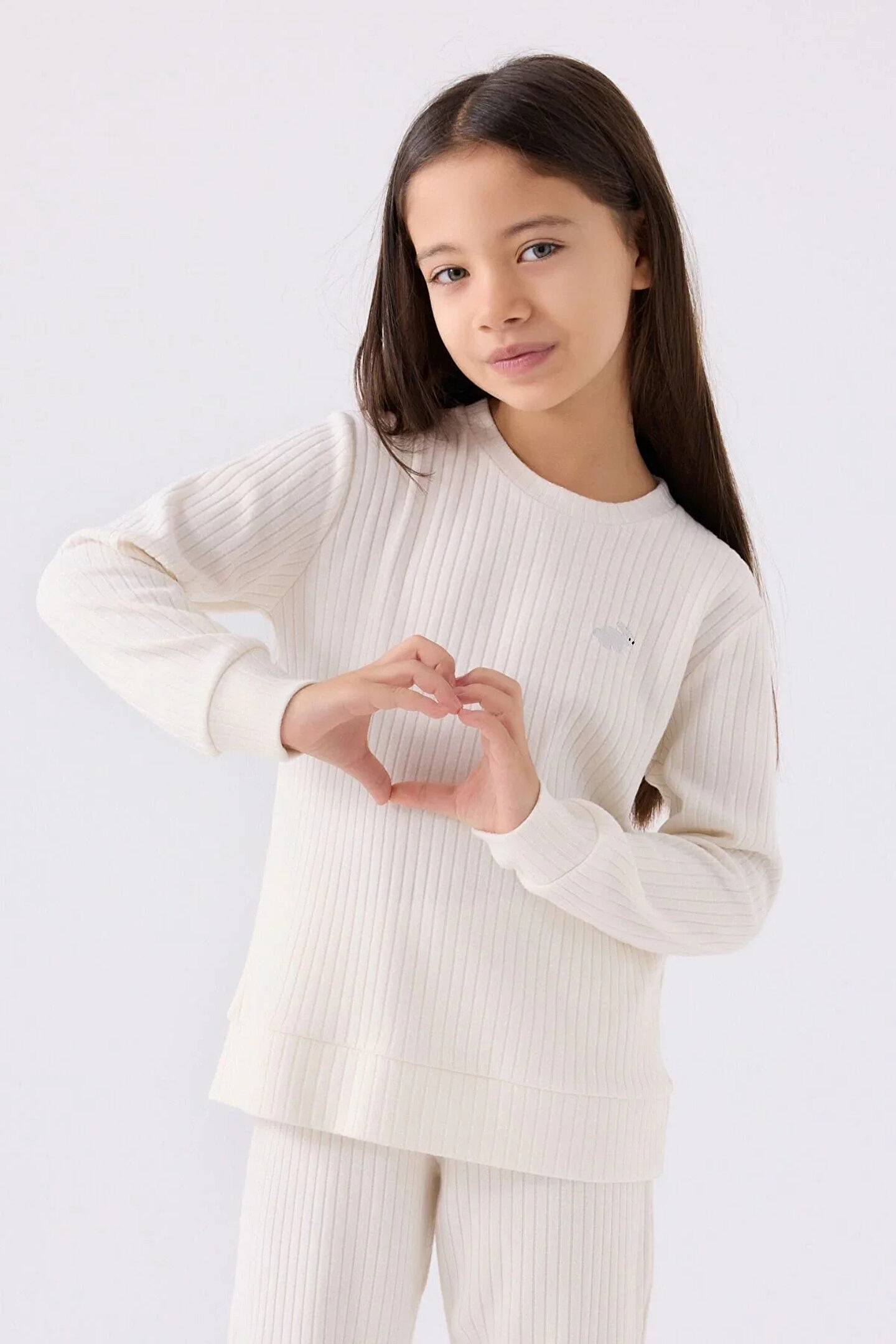RolyPoly Kız Çocuk Beyaz Uzun Kol Pijama Takım