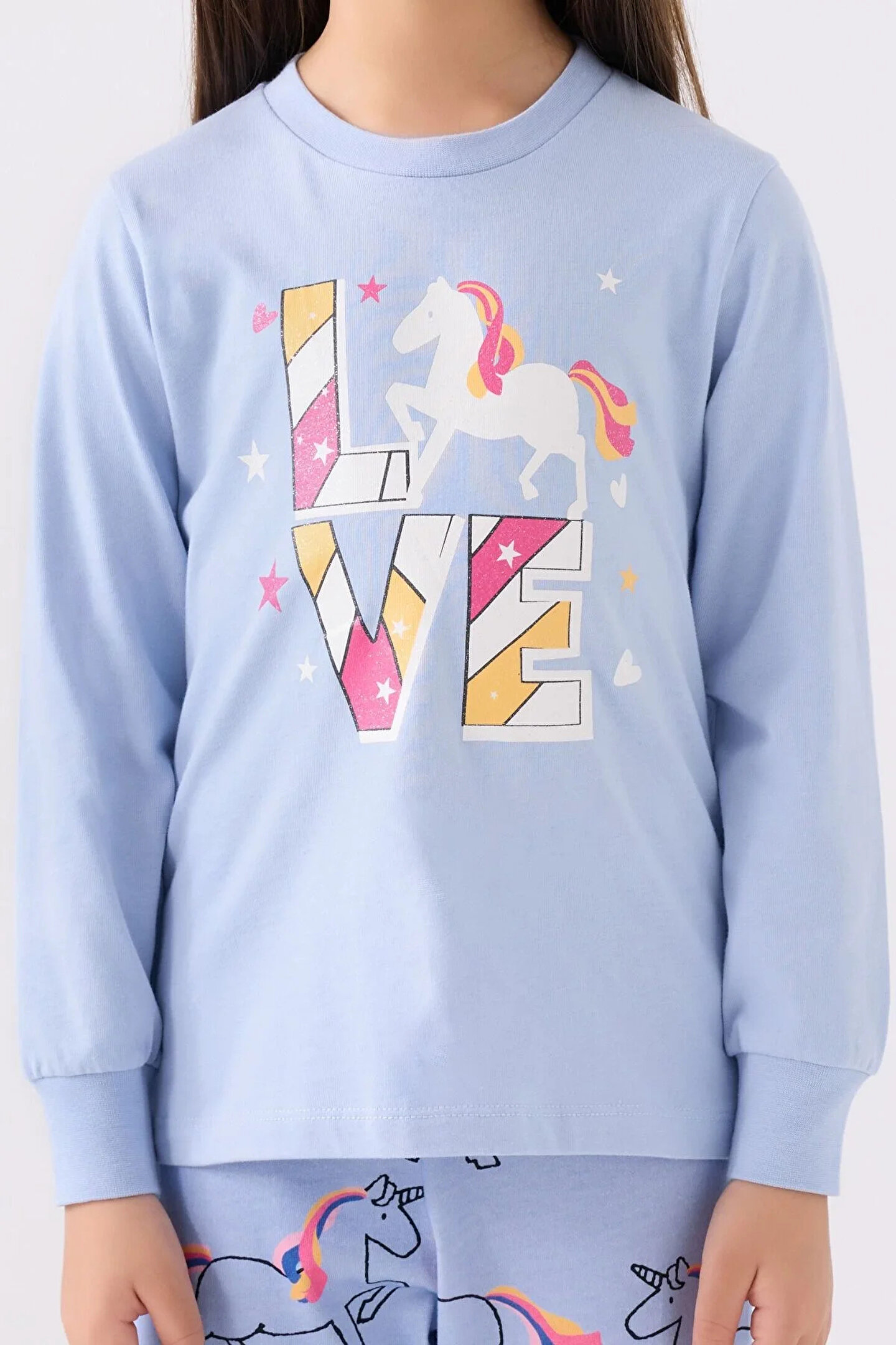Kız Çocuk Mavi Uzun Kol Pijama Takım