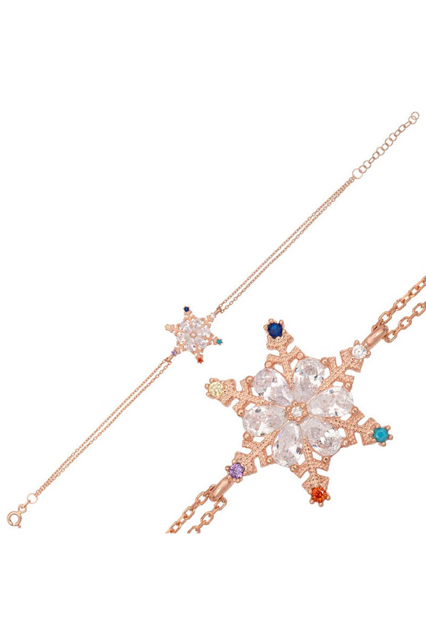 925 Ayar Gümüş Rose Renkli Taşlı Kar Tanesi Kadın Bileklik