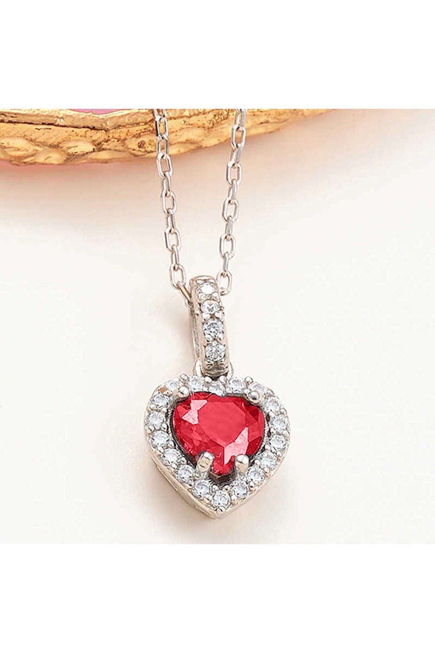 Samur Parti Parti Aksesuar & Kostüm 925 Ayar Gümüş Kırmızı Taşlı Kalpli Kadın Kolye