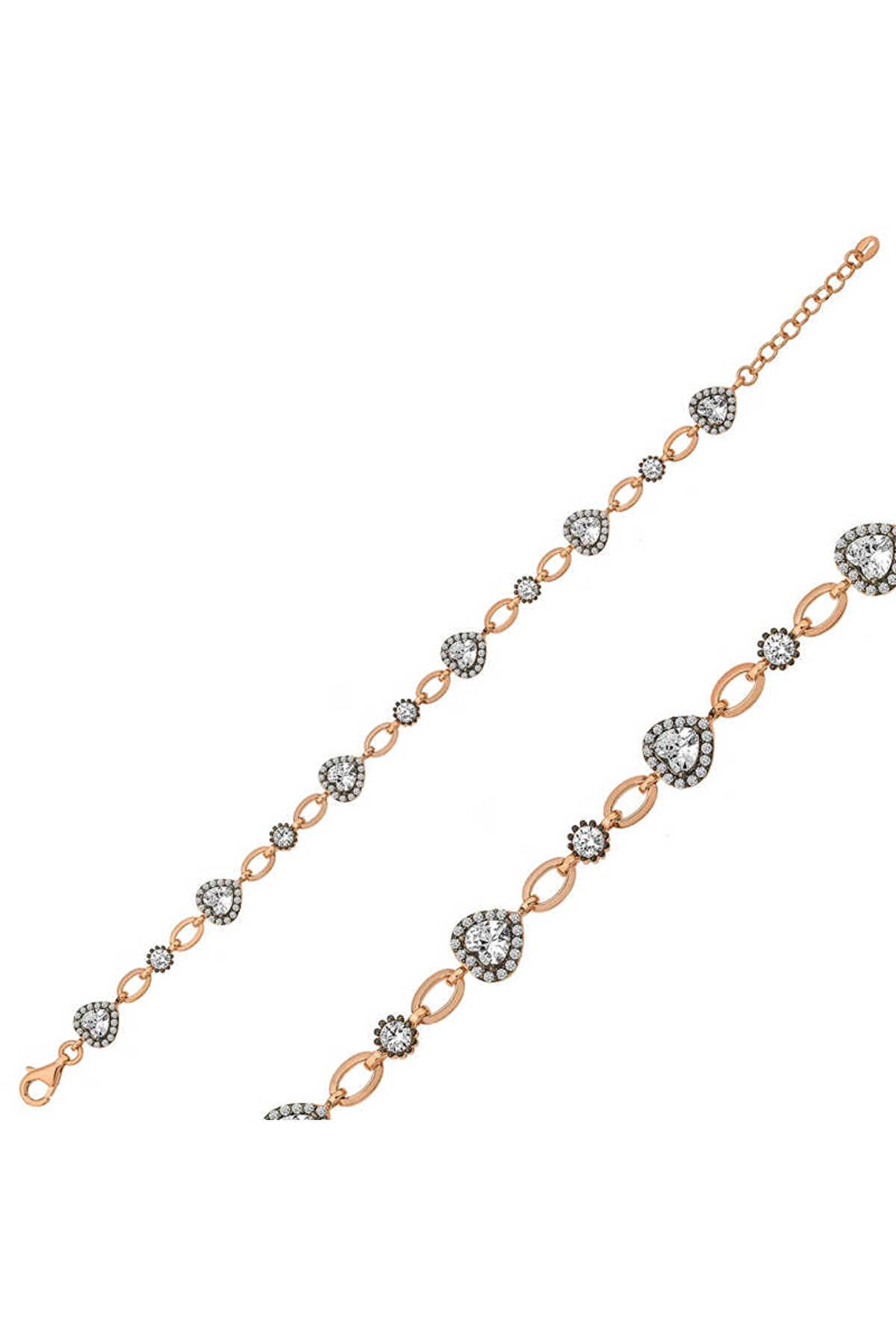 Samur Parti Parti Aksesuar & Kostüm 925 Ayar Gümüş Rose Kalpler Bileklik