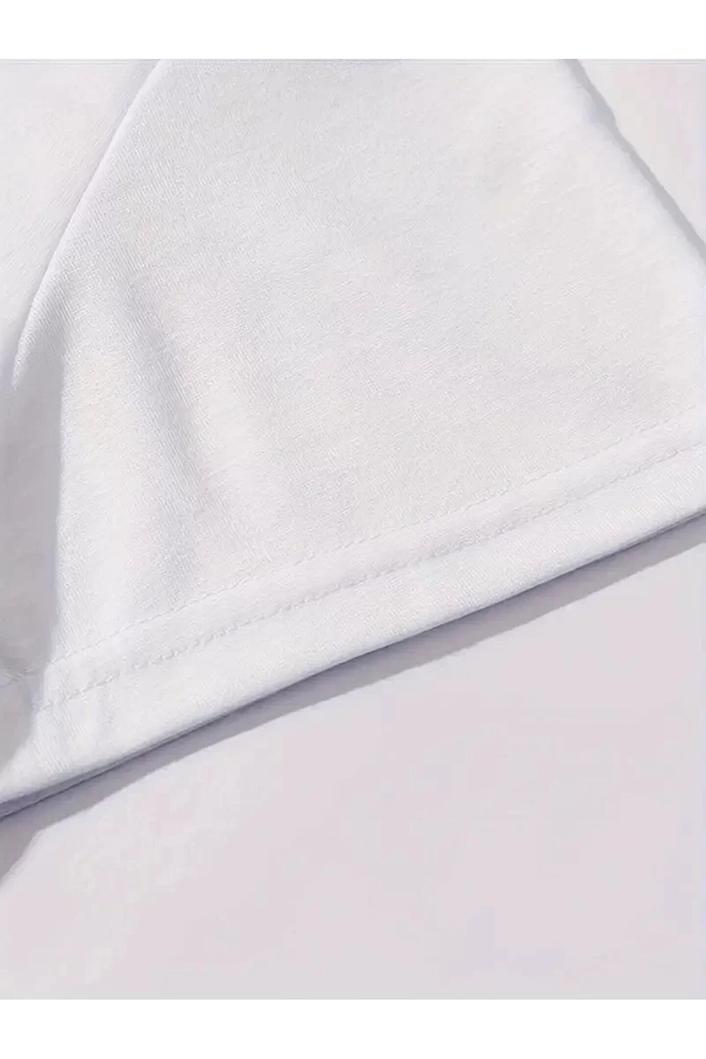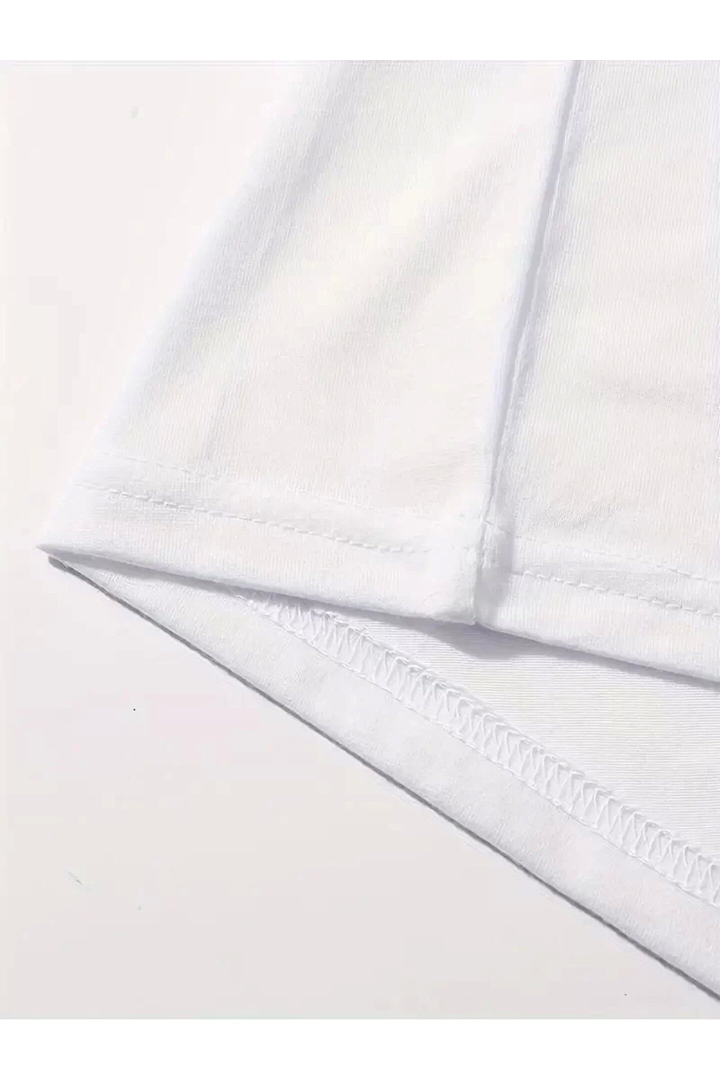ruum fashions 201 Penye Compack Baskılı Oversize Kahve Desenli Kadın Kısa Kol T-shirt - Beyaz