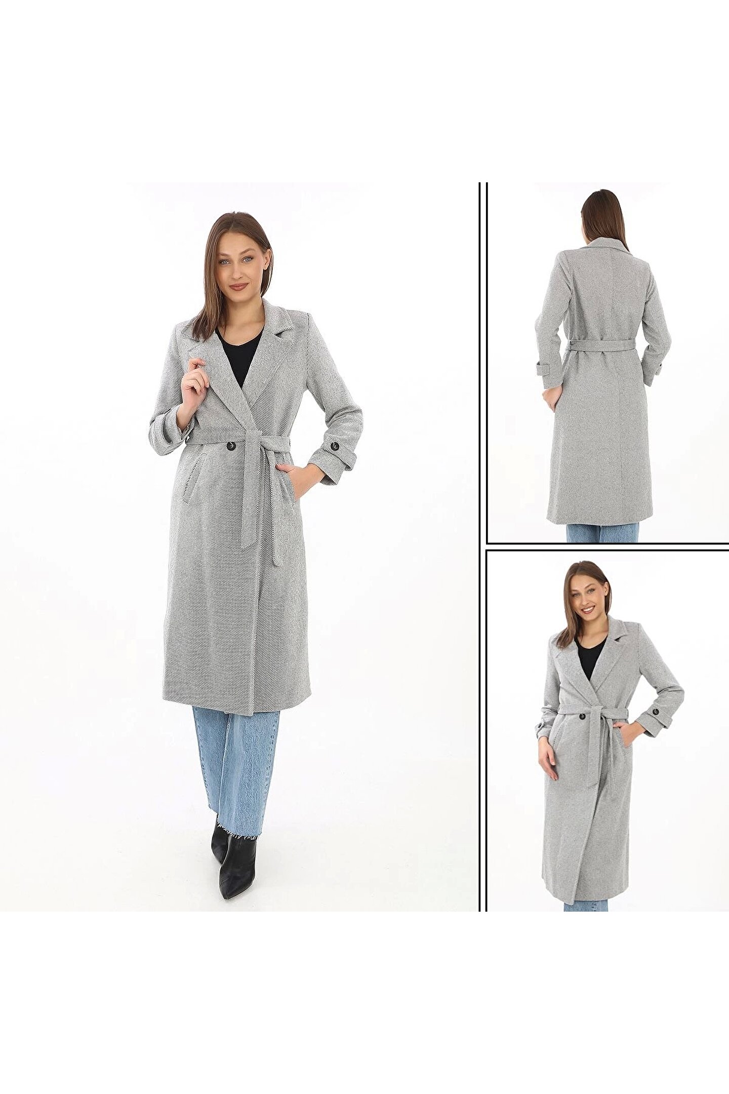 ruum fashions Kadın Balık Sırtı Kaşe Kaban – Uzun Boy Kruvaze Yaka Kuşaklı Astarlı Kışlık Tesettür Kaban, Yünlü Do
