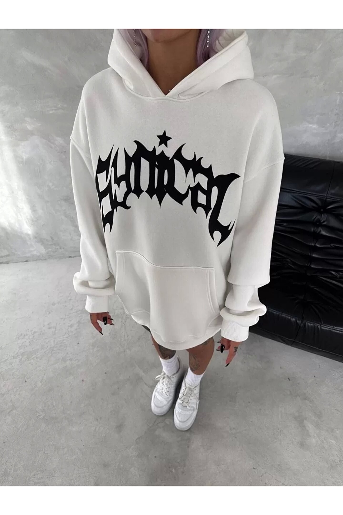 ruum fashions Unisex Üç İplik Kapüşonlu Baskılı SweatShirt - Beyaz