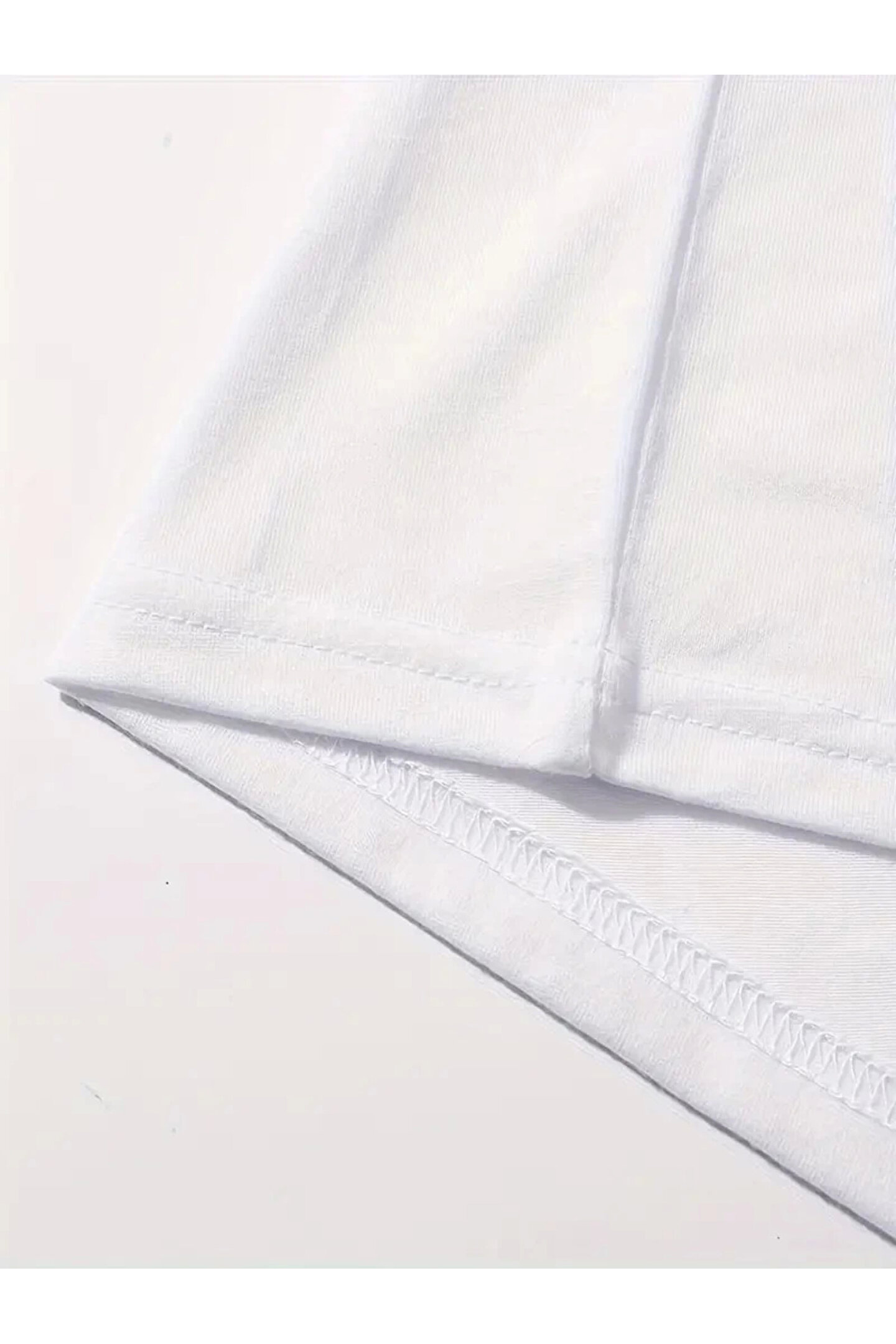 ruum fashions Velmora Premium 201 Penye Compack Baskılı Oversize Kahve Desenli Kısa Kol T-shirt - Beyaz -